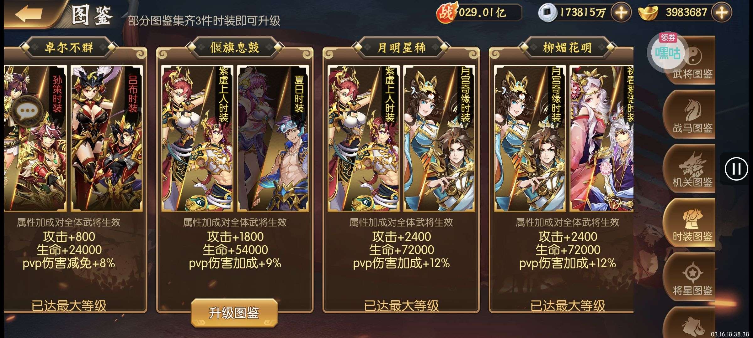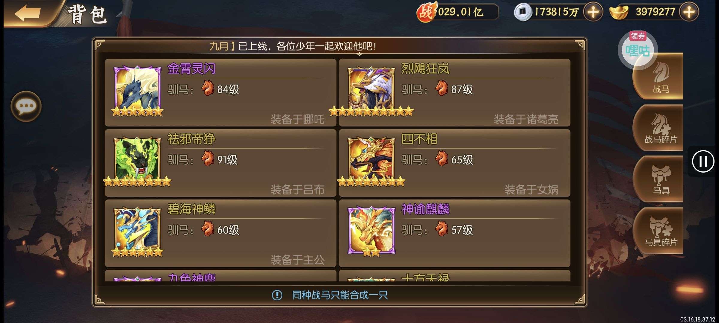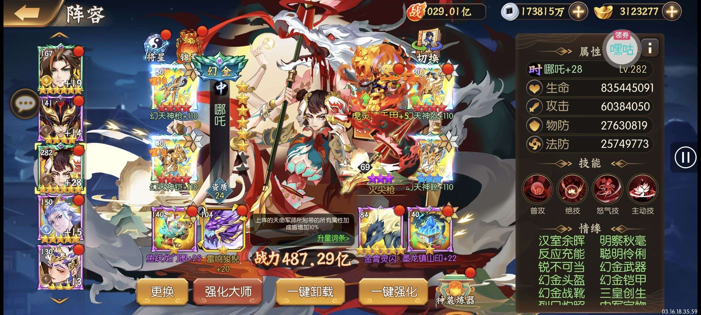 培养的很好,PVP很厉害,金攻击一千多万,再拉一下紫金将星,还能强势一些