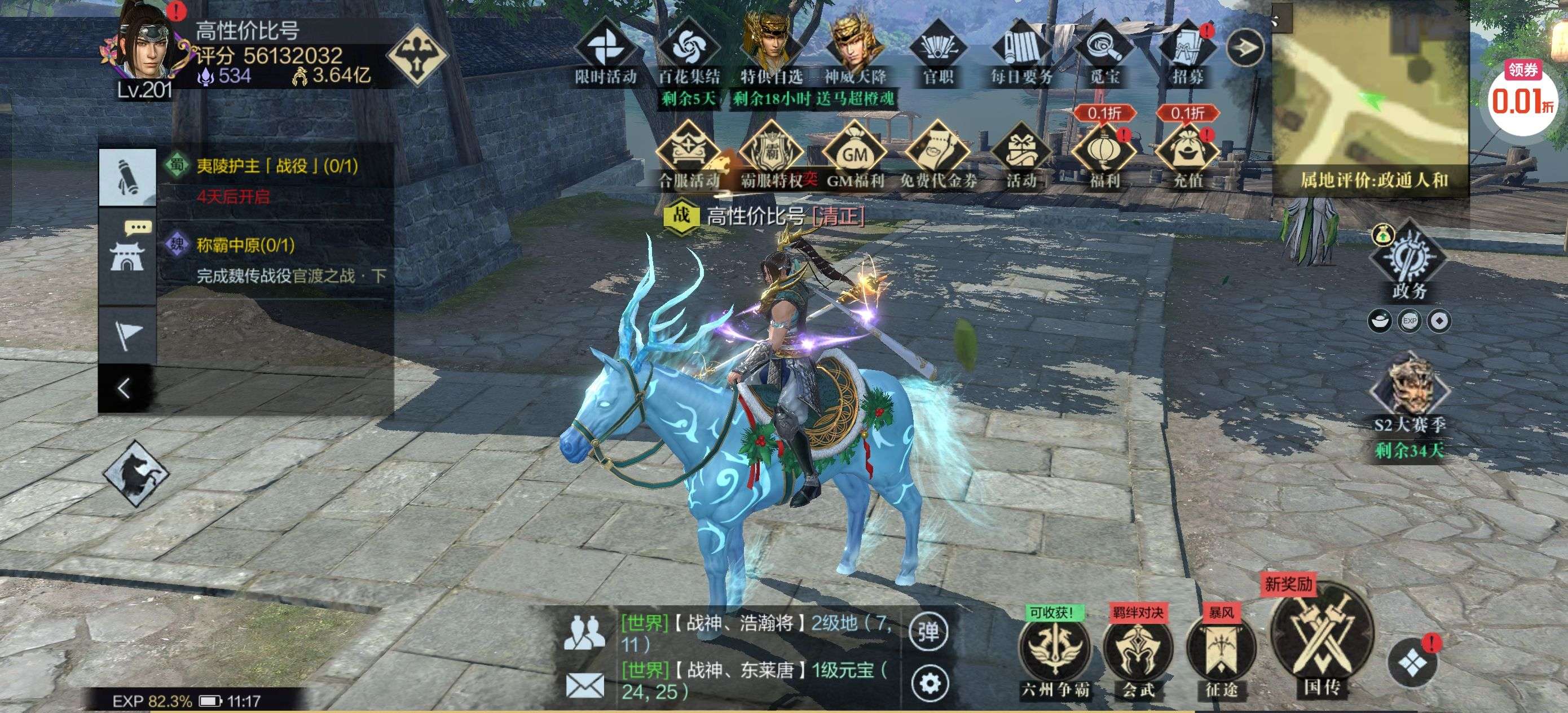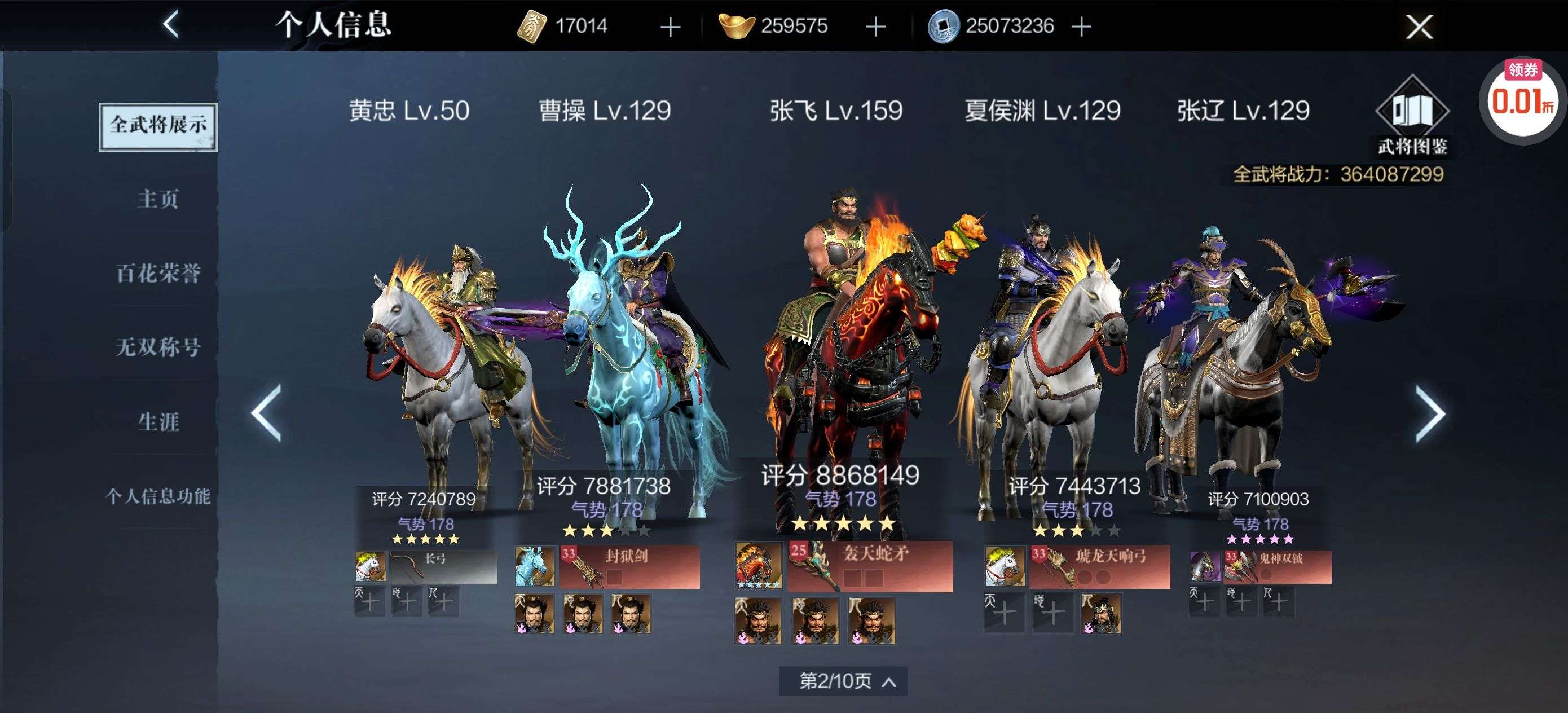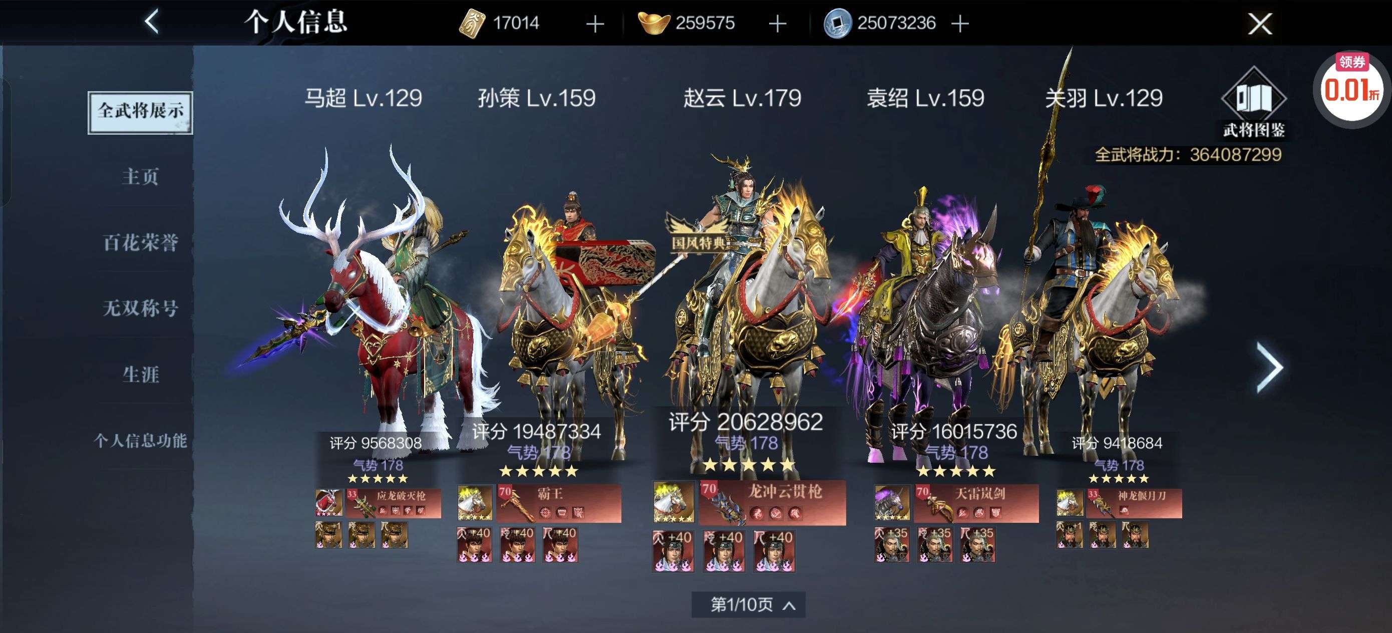 武将基本都有,就少数几个没有,高战力号,便宜甩卖了,体验武将的必购