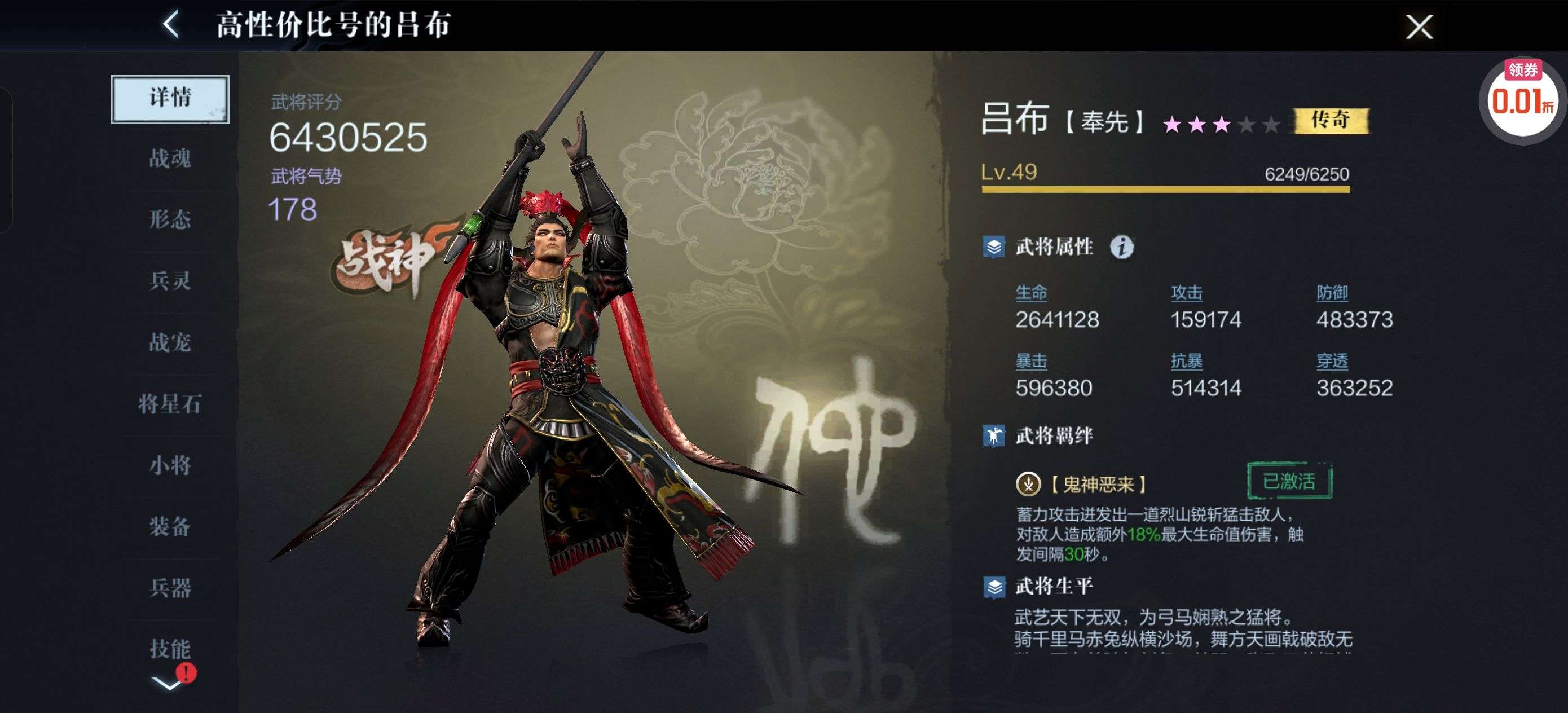 超级战力号,大军师司马懿,吕布都有。绝对物超所值