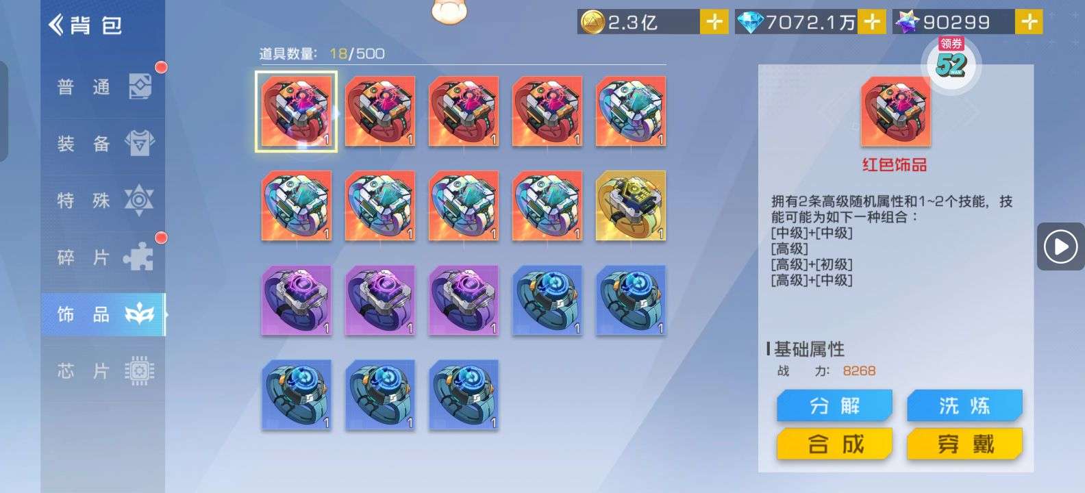 芯片熔炼石*1、离子探针*50、净化金属*50(每个账号限领一次)