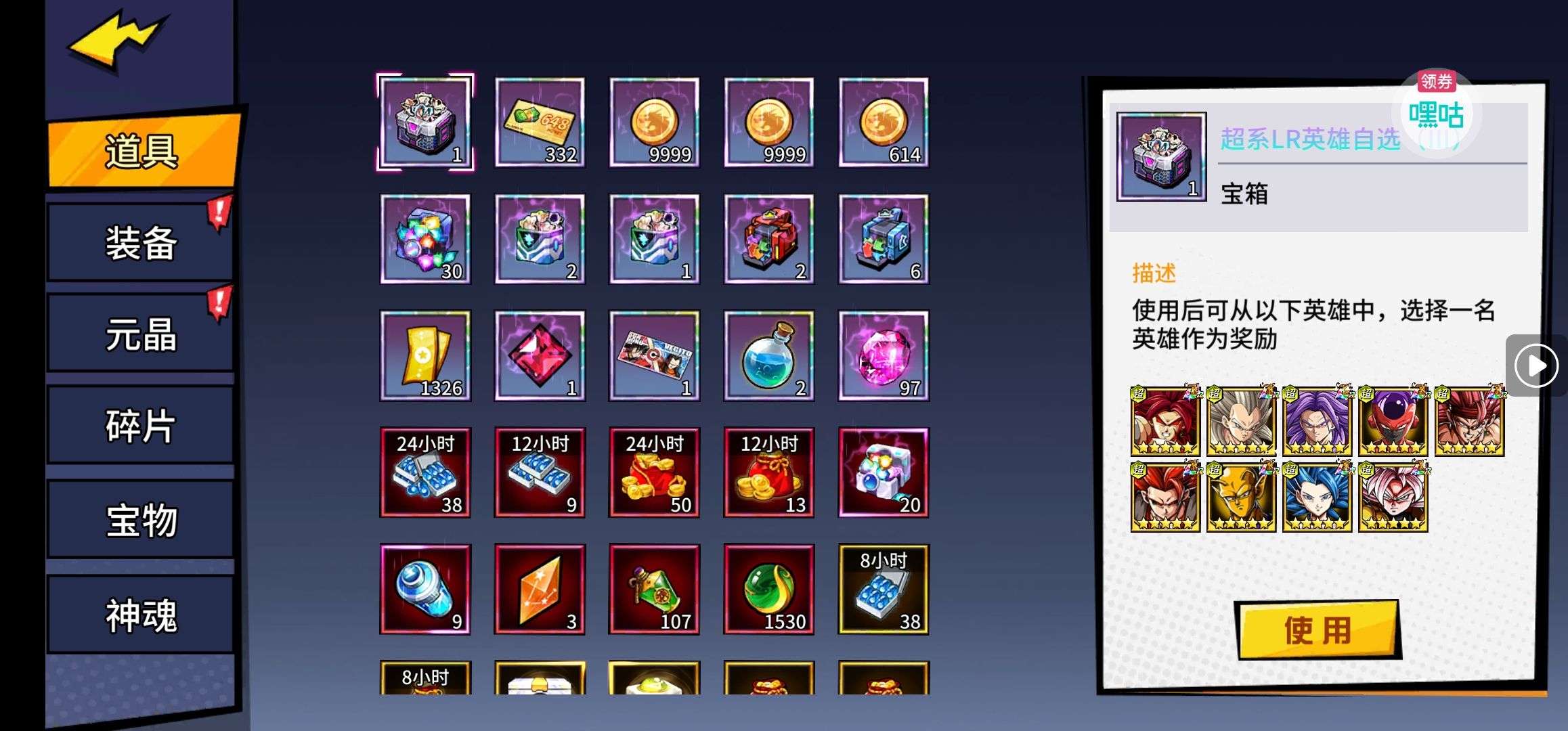 夺宝券*1、比武令*1、5星随机将魂*10(每个账号限领一次)