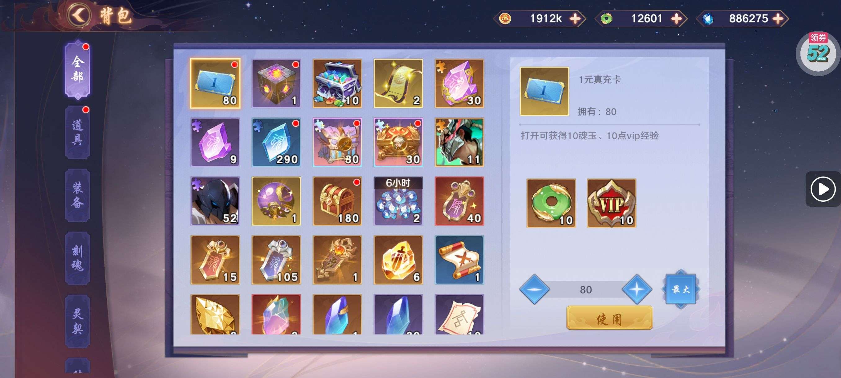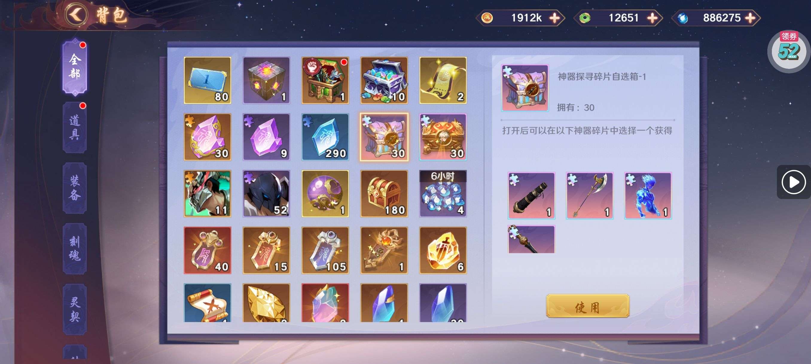 夺宝券*1、比武令*1、5星随机将魂*10(每个账号限领一次)