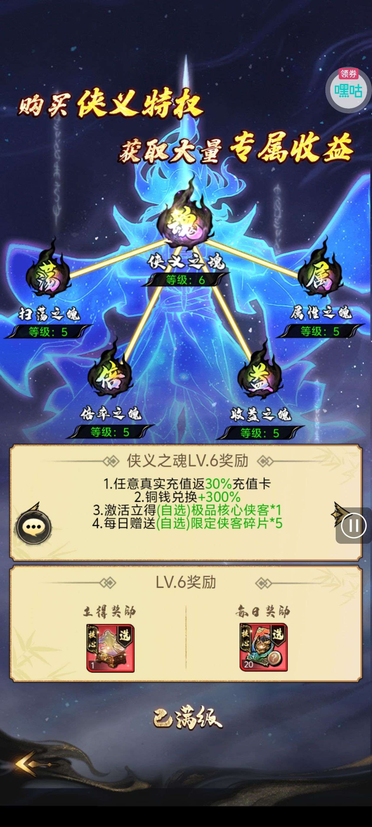 夺宝券*1、比武令*1、5星随机将魂*10(每个账号限领一次)
