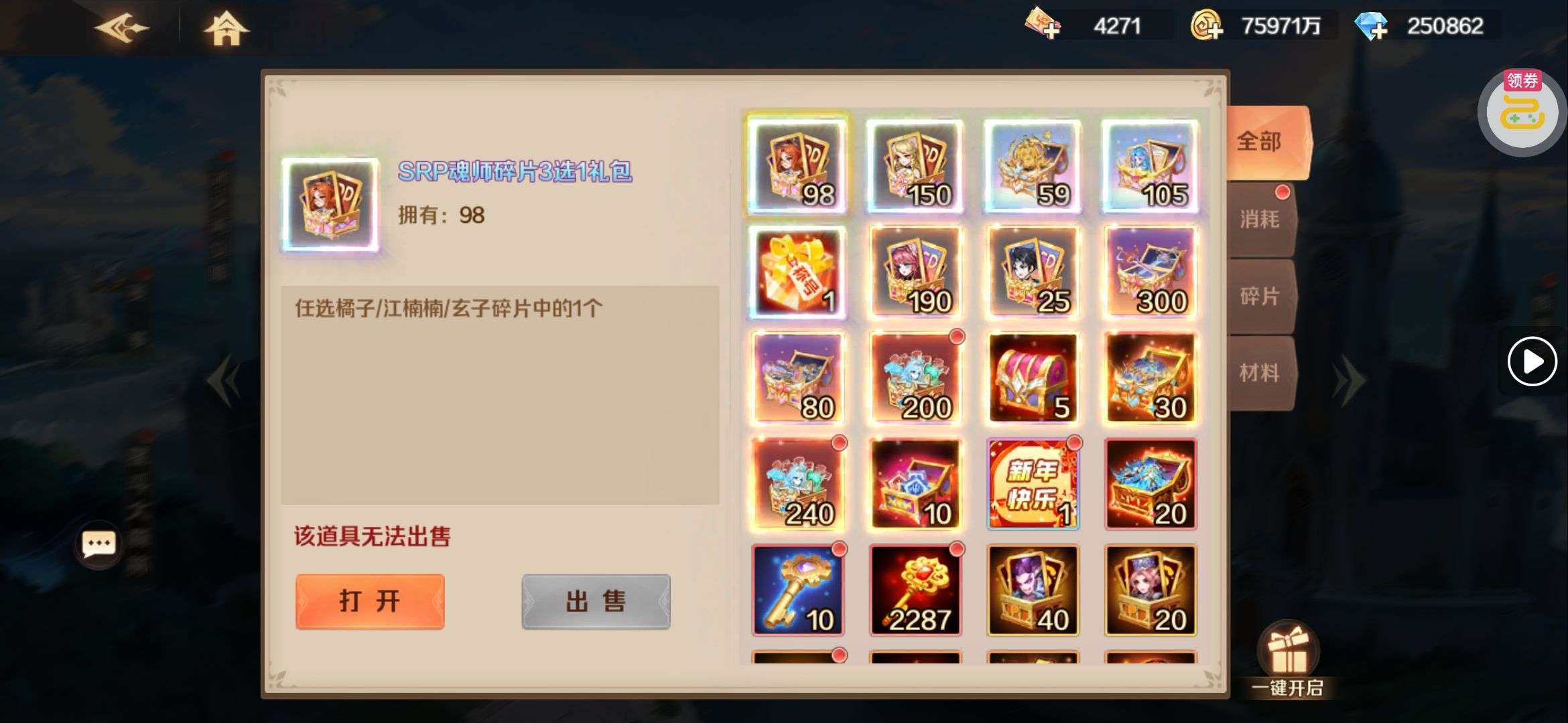 魂晶*888,魂师召唤券*10,武魂水晶*5(每个账号限领一次)