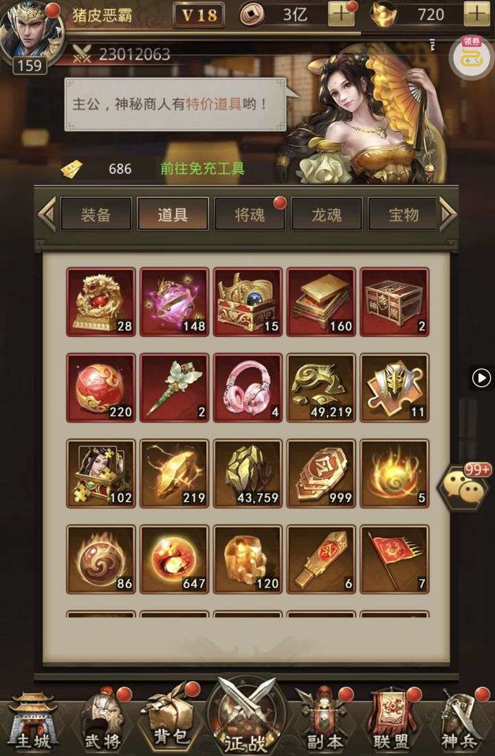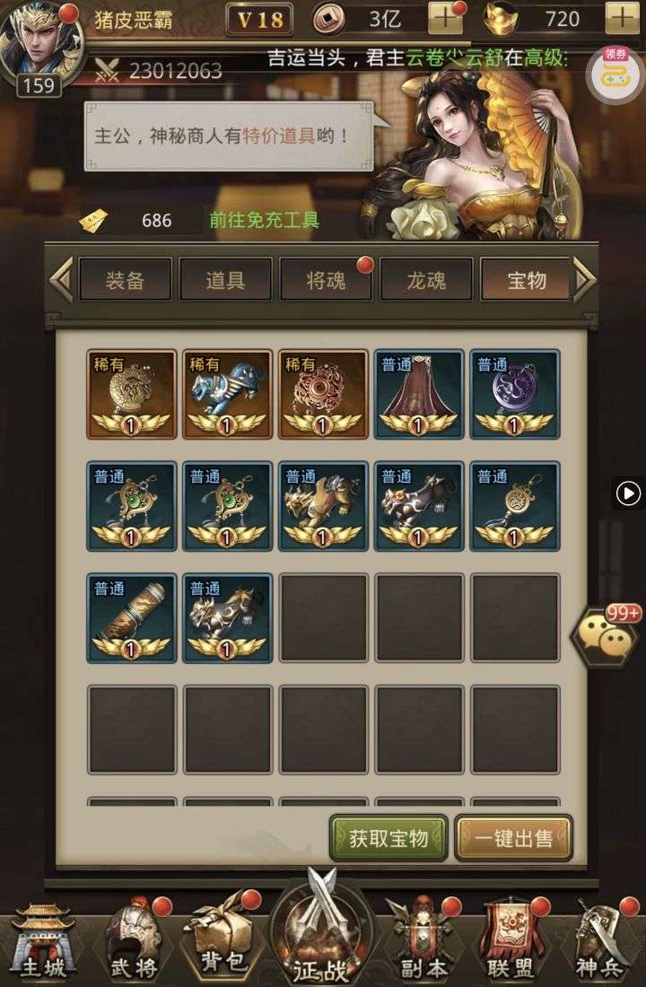 夺宝券*1、比武令*1、5星随机将魂*10(每个账号限领一次)