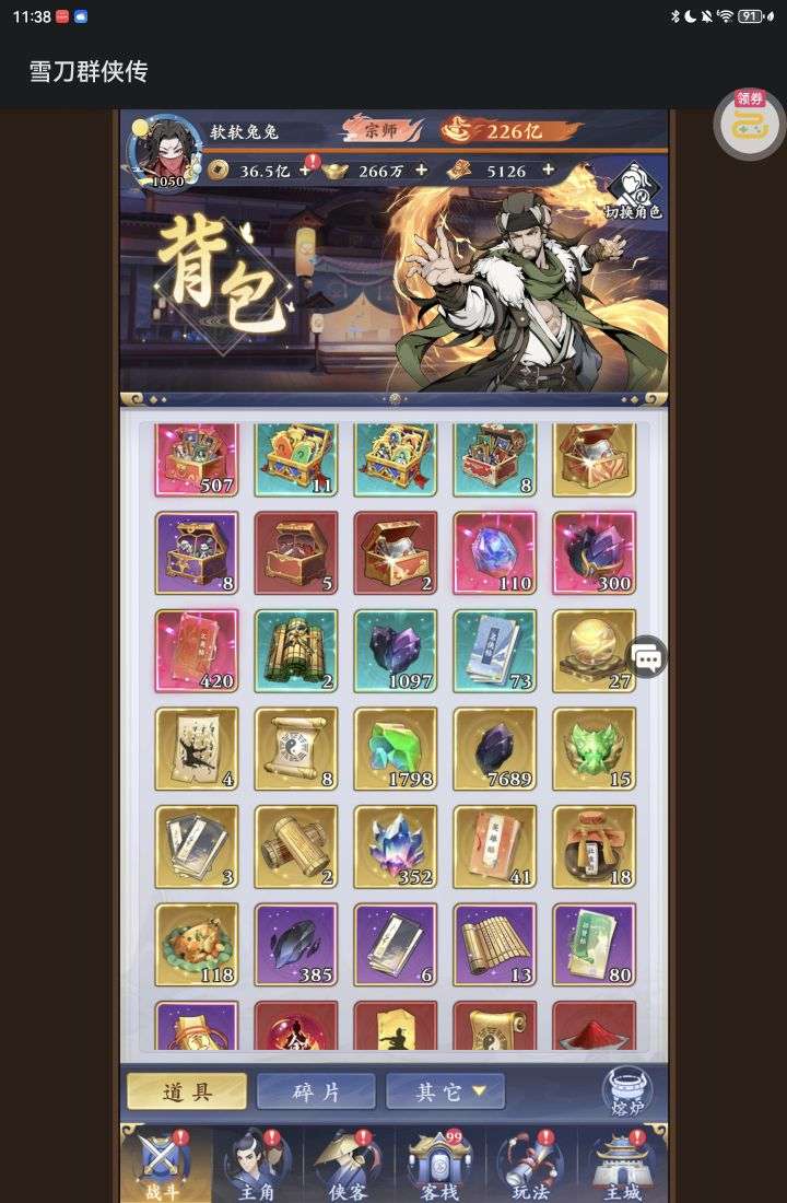 夺宝券*1、比武令*1、5星随机将魂*10(每个账号限领一次)