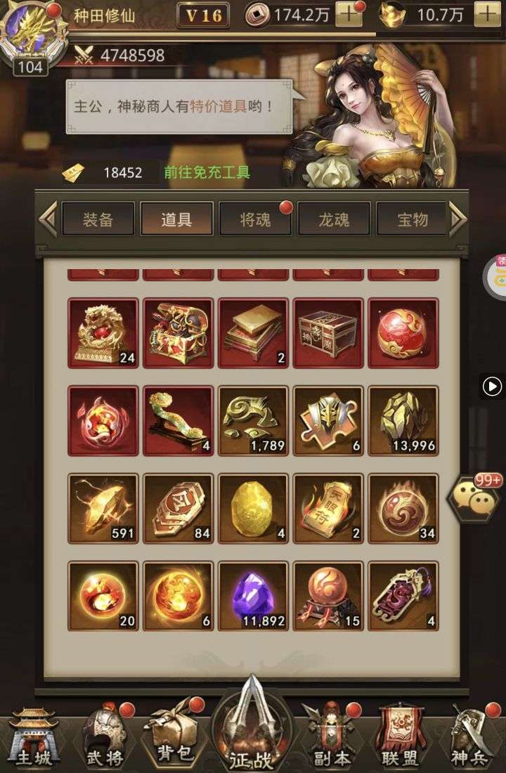 夺宝券*1、比武令*1、5星随机将魂*10(每个账号限领一次)