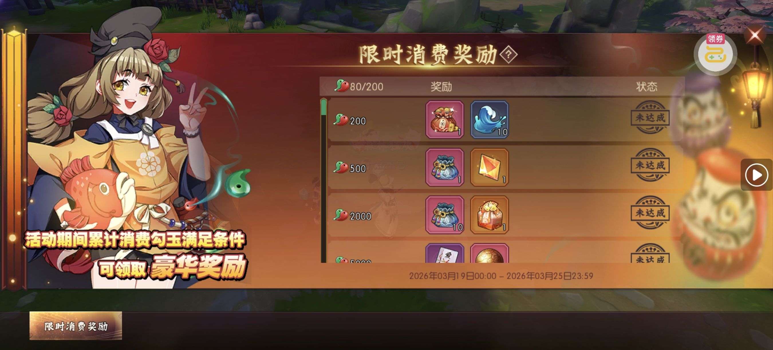 五阵营输出自选包*1、豪华材料自选礼包*2、高级忍法帖*20(每个账号限领一次)