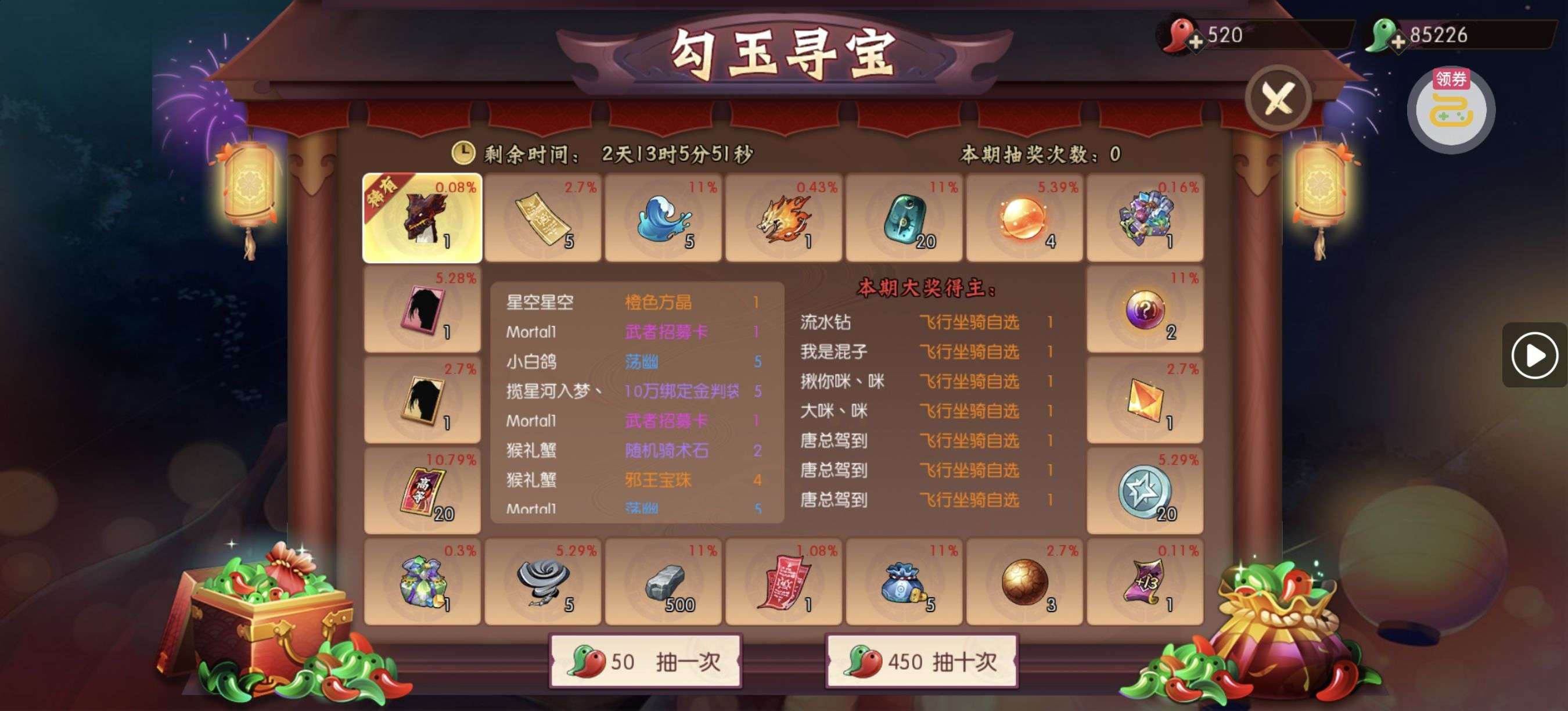 夺宝券*1、比武令*1、5星随机将魂*10(每个账号限领一次)