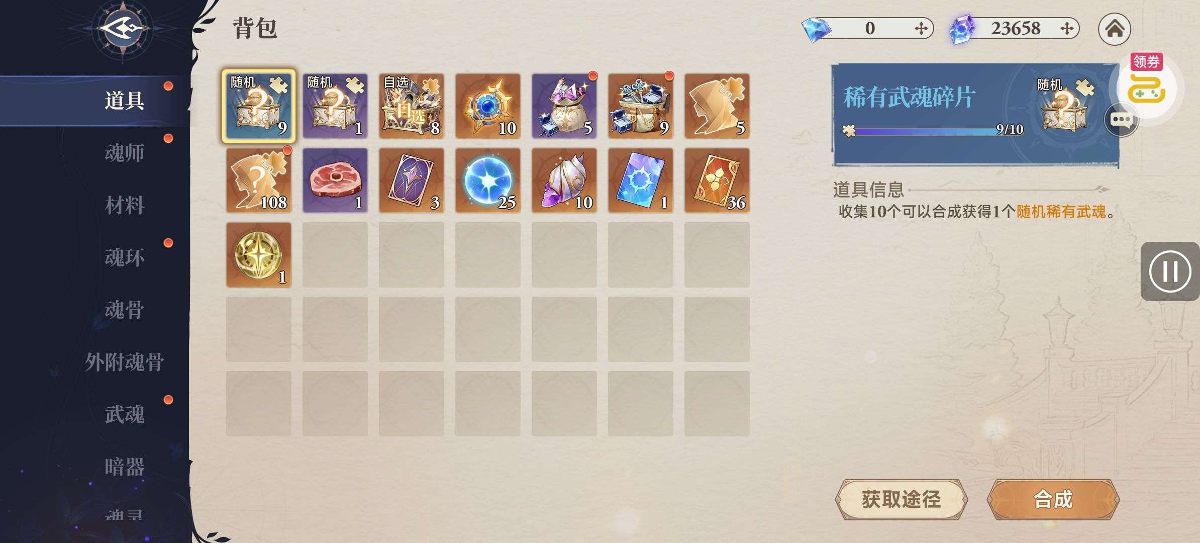 魂晶*888,魂师召唤券*10,武魂水晶*5(每个账号限领一次)