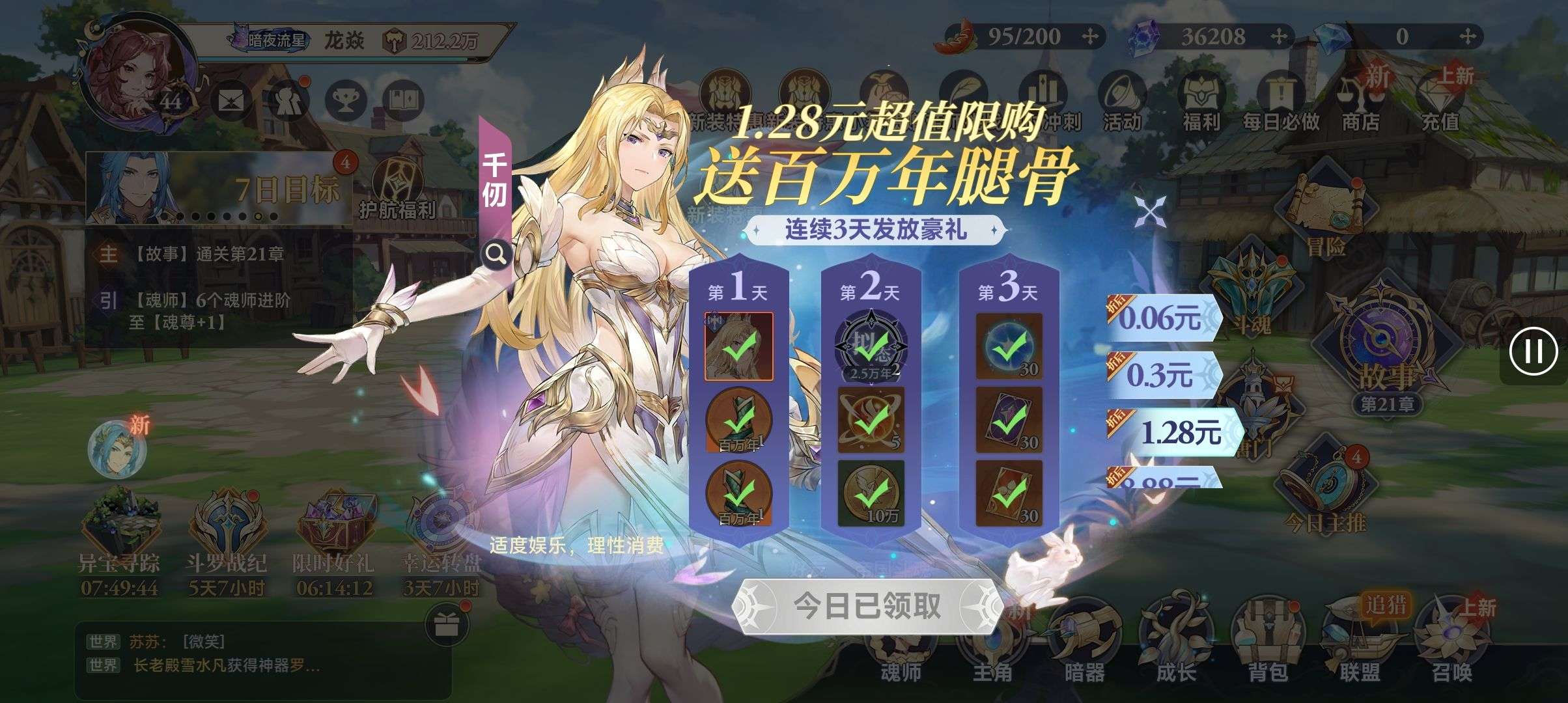 魂晶*888,魂师召唤券*10,武魂水晶*5(每个账号限领一次)