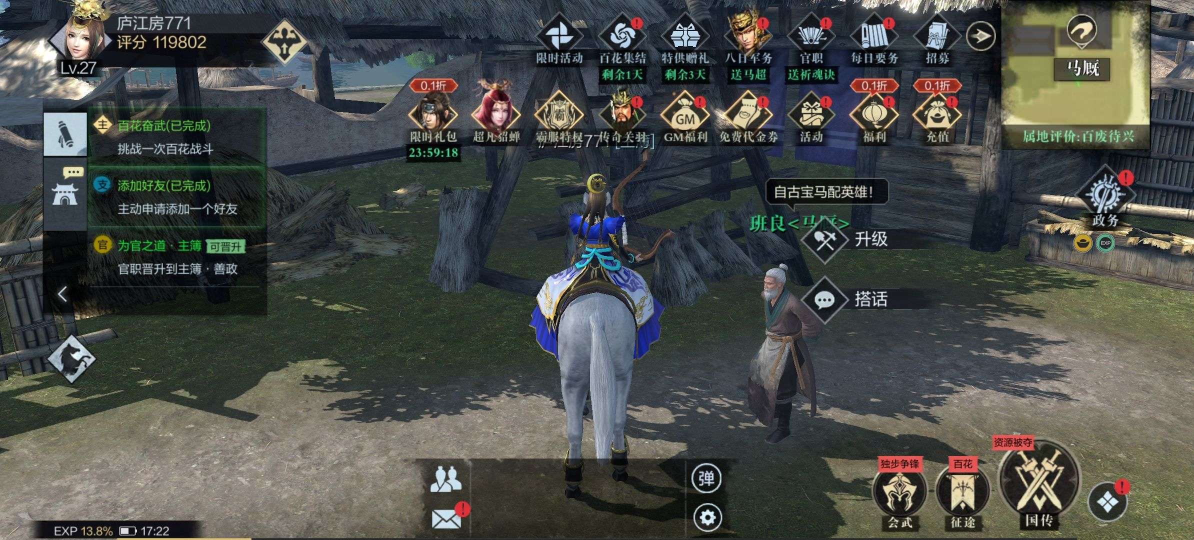 武将基本都有,就少数几个没有,高战力号,便宜甩卖了,体验武将的必购