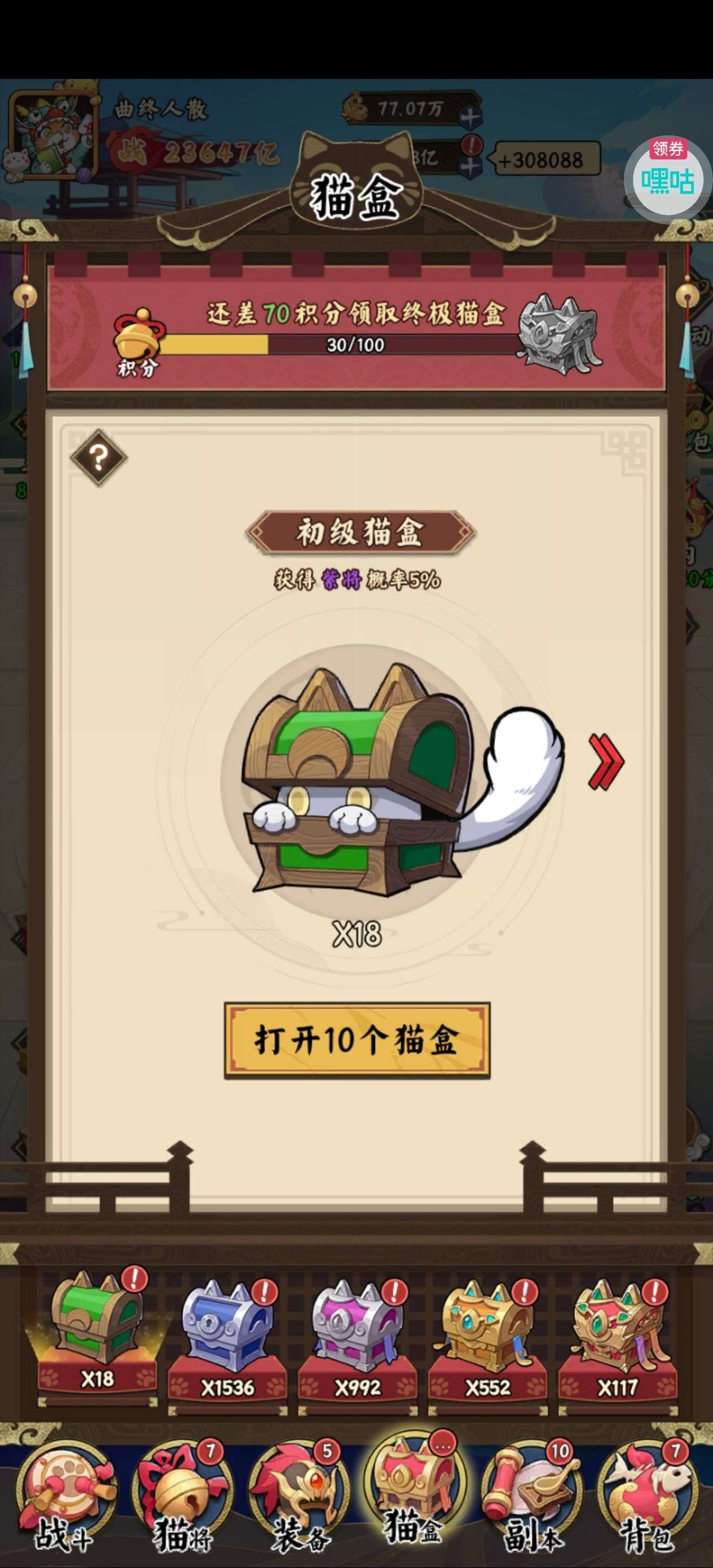 夺宝券*1、比武令*1、5星随机将魂*10(每个账号限领一次)