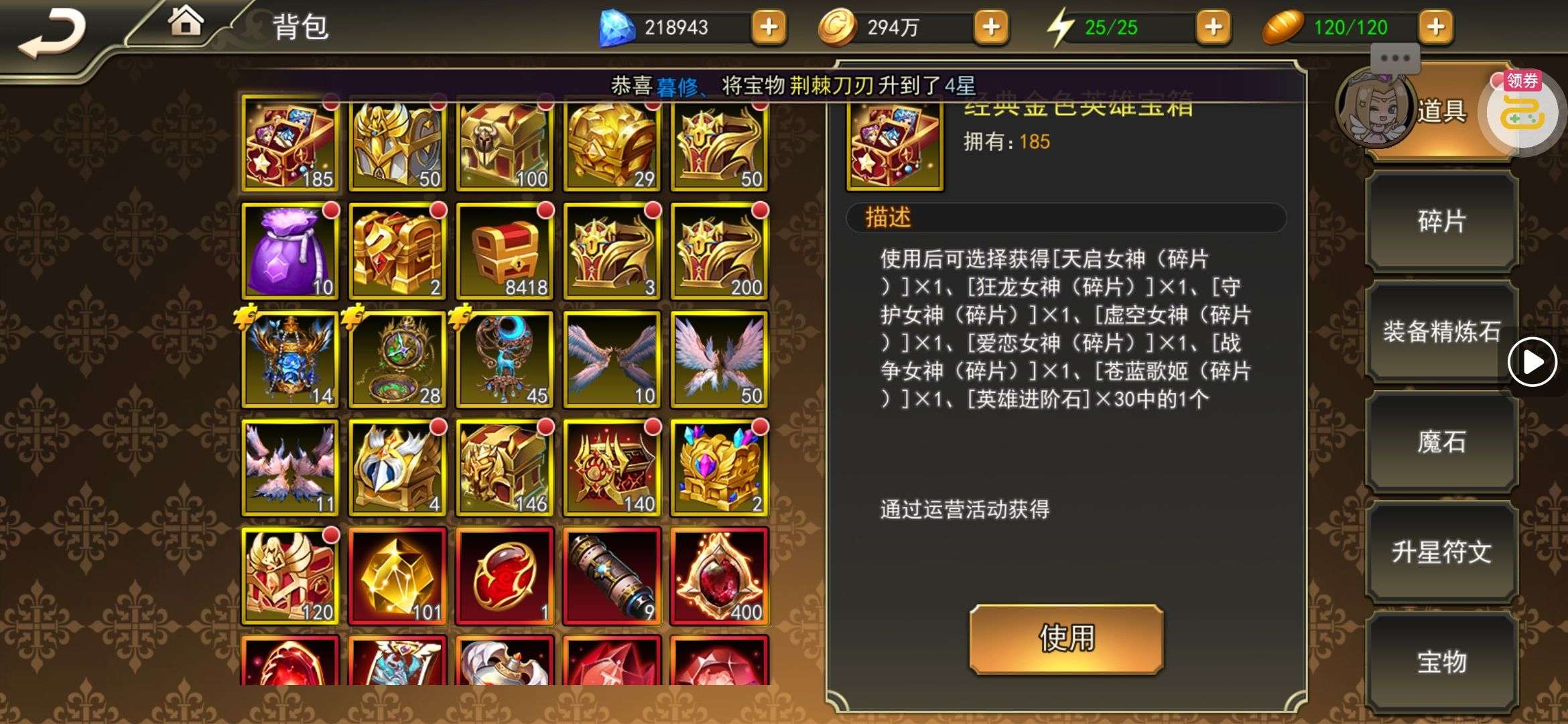 夺宝券*1、比武令*1、5星随机将魂*10(每个账号限领一次)