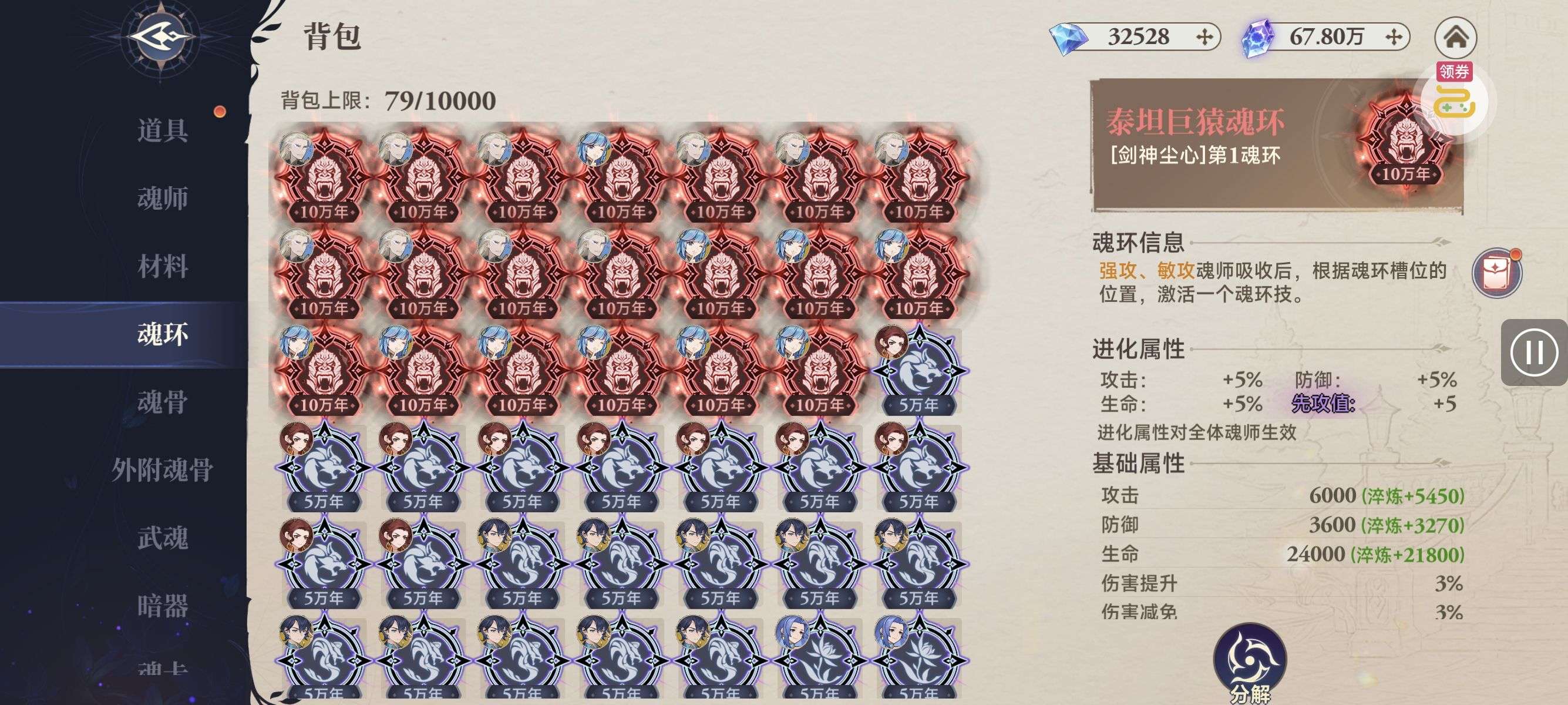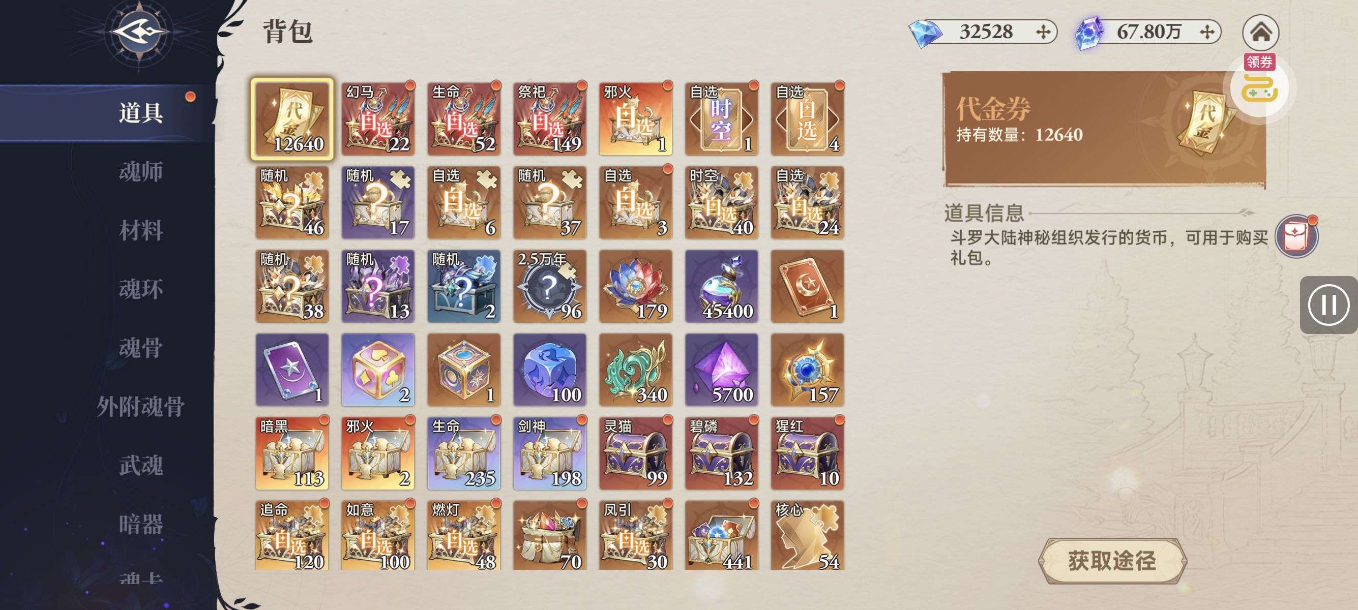 魂晶*888,魂师召唤券*10,武魂水晶*5(每个账号限领一次)