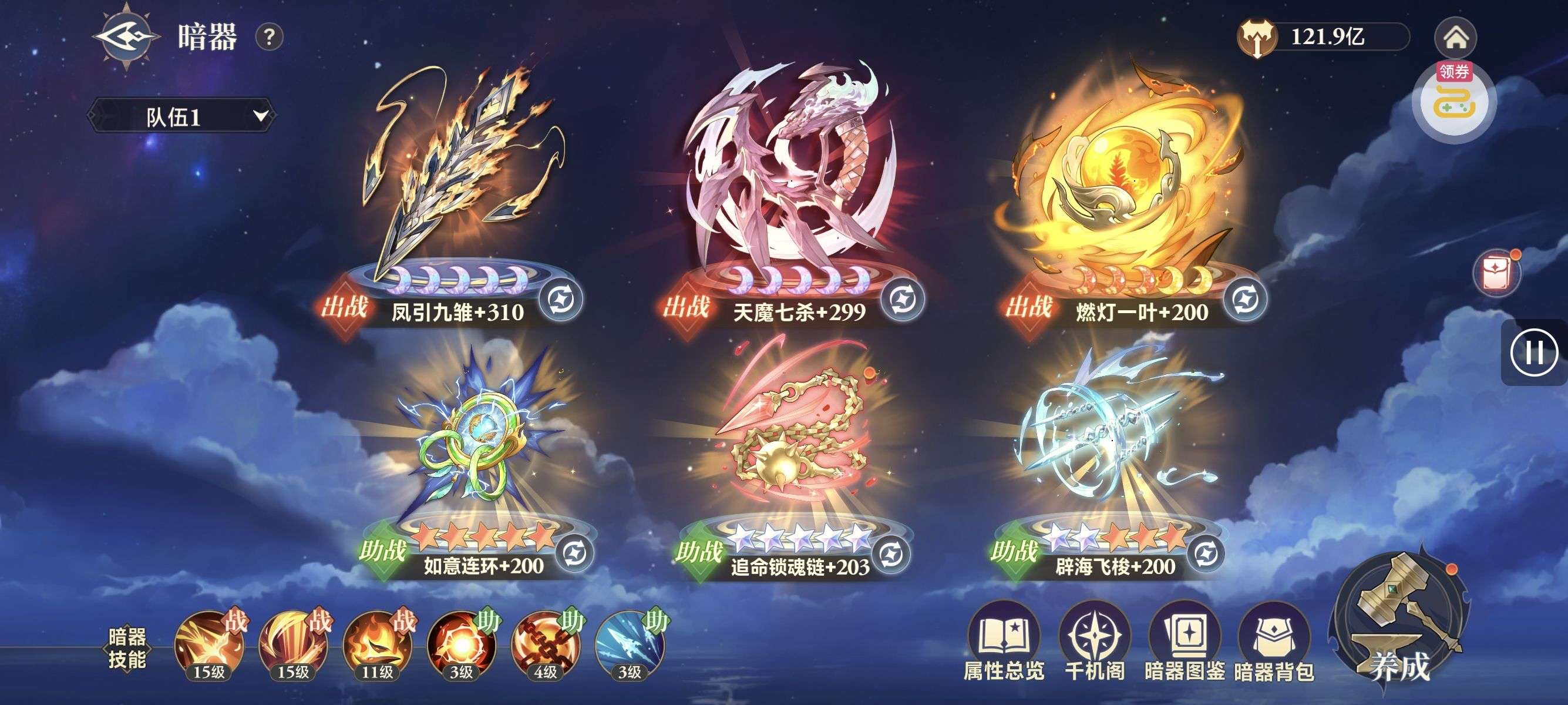 夺宝券*1、比武令*1、5星随机将魂*10(每个账号限领一次)