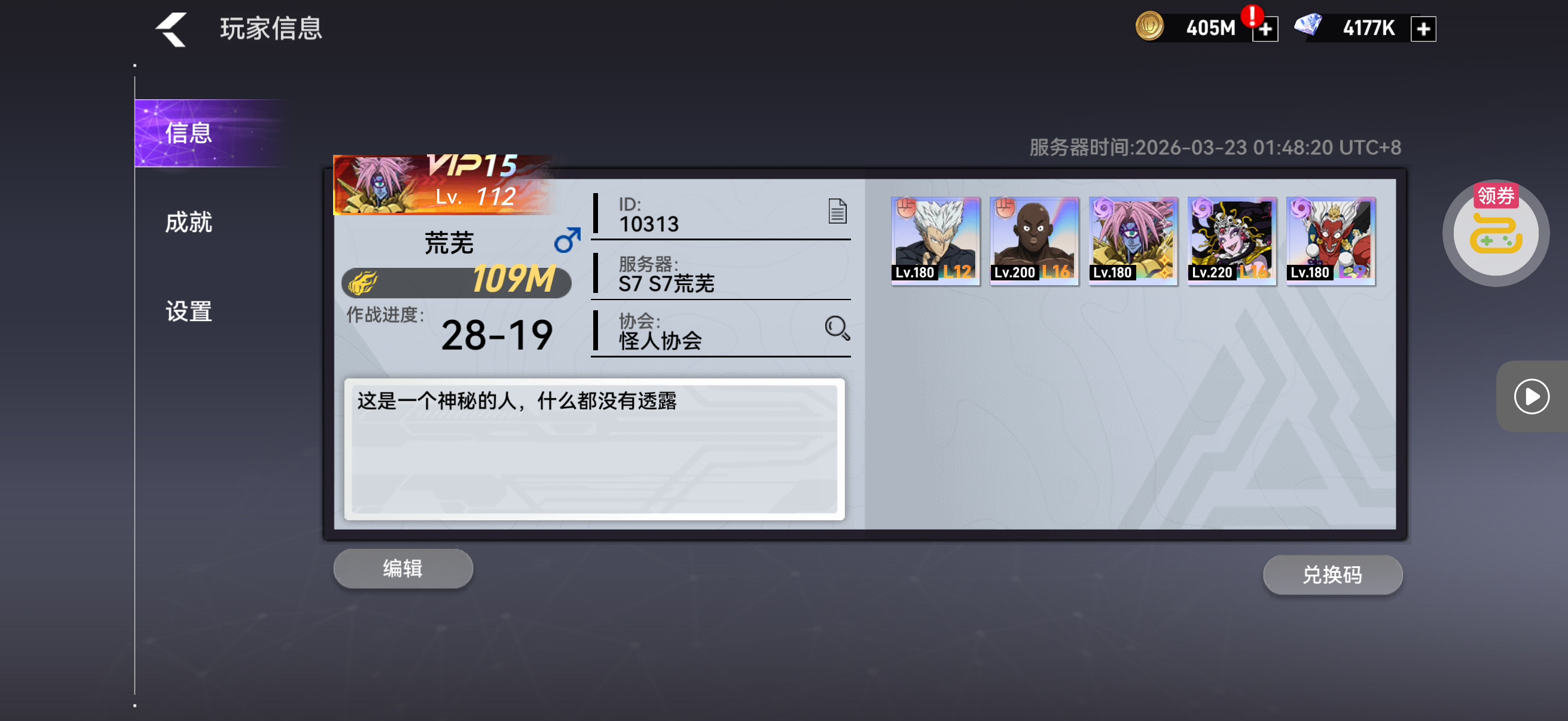 没有排行榜相关信息,28-19顶级号,培养全对没走一丝弯路,大眼黑光专属羁绊, 且专属技能满级,线下拿的全服唯一波罗斯,加波罗斯满级专属素材(用了9个升到80,背包还有2个,一共11个),25%血瞬移斩杀,没时间玩忍痛边玩边出