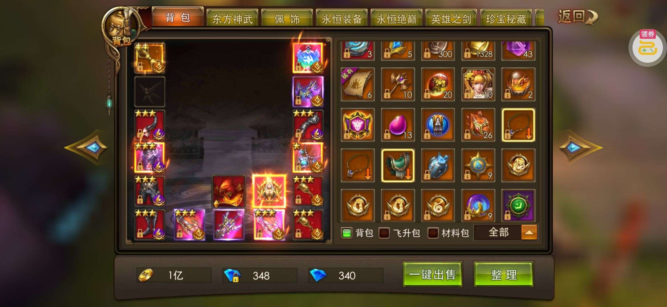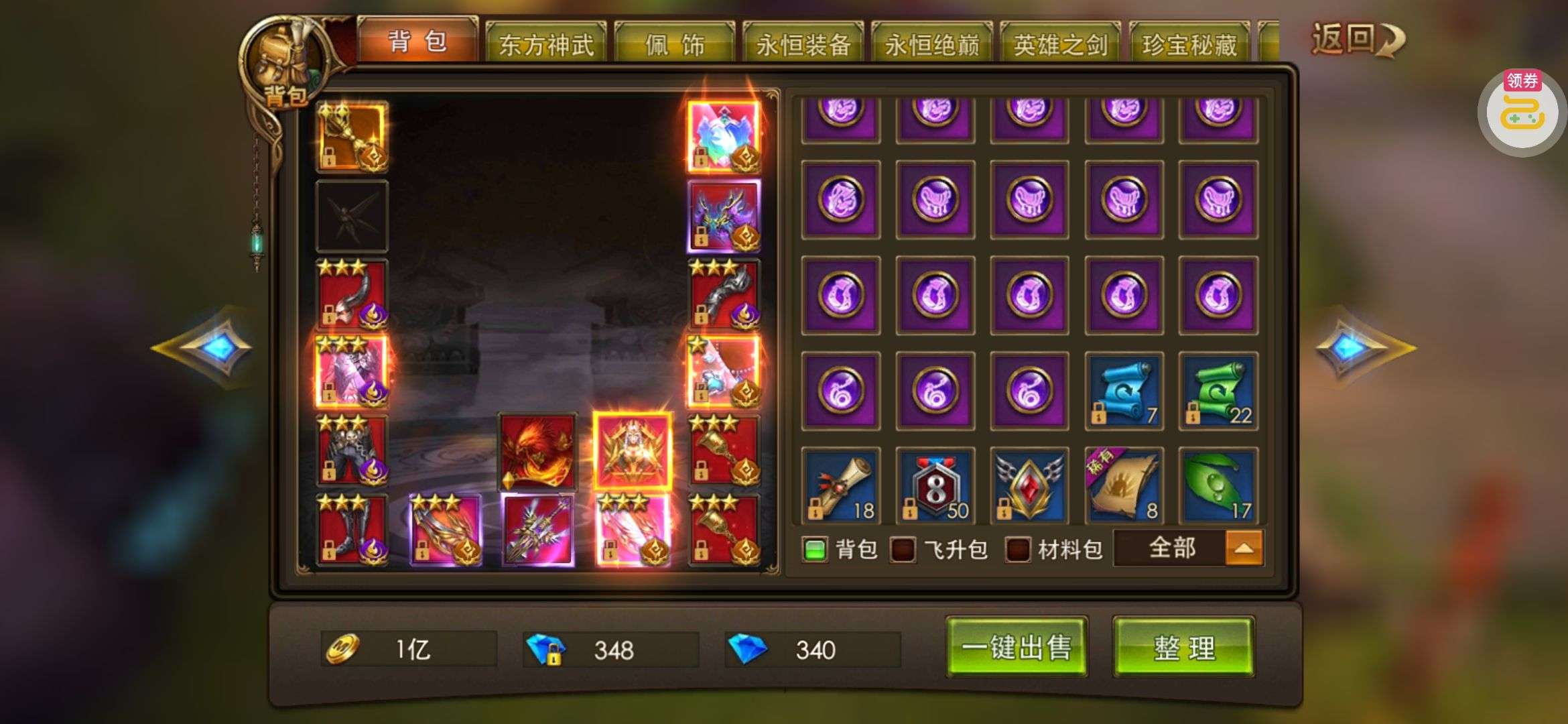 夺宝券*1、比武令*1、5星随机将魂*10(每个账号限领一次)