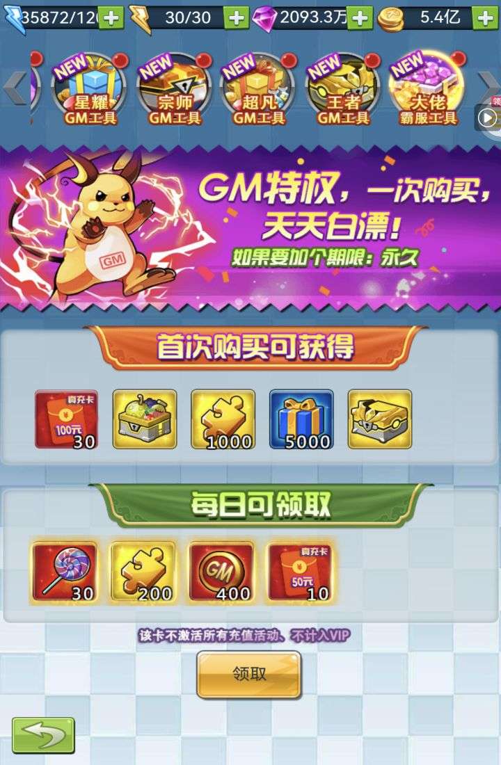 30张648真充卡豪礼、侠客灵丹*10、侠客神丹*10、侠客金丹*1、专属挑战令*1(每个账号限领一次)