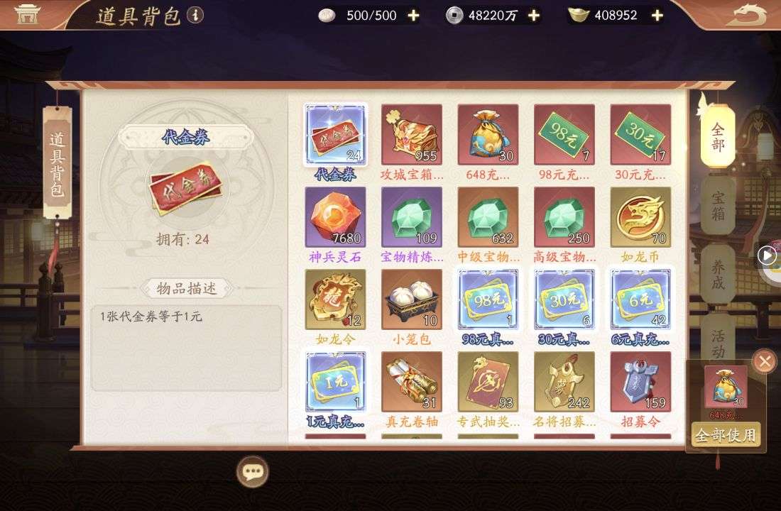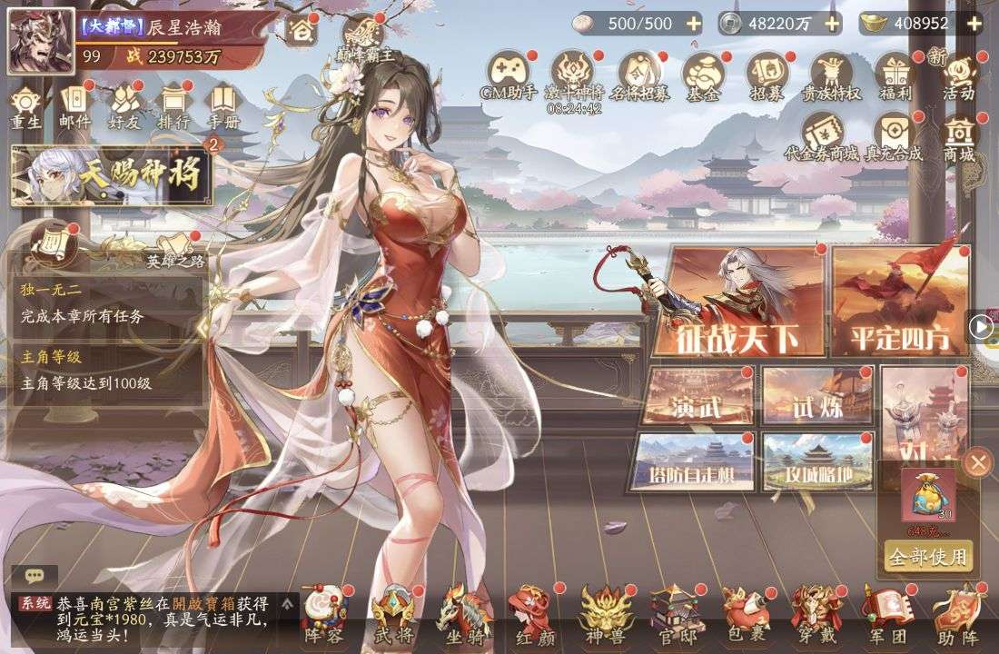 夺宝券*1、比武令*1、5星随机将魂*10(每个账号限领一次)