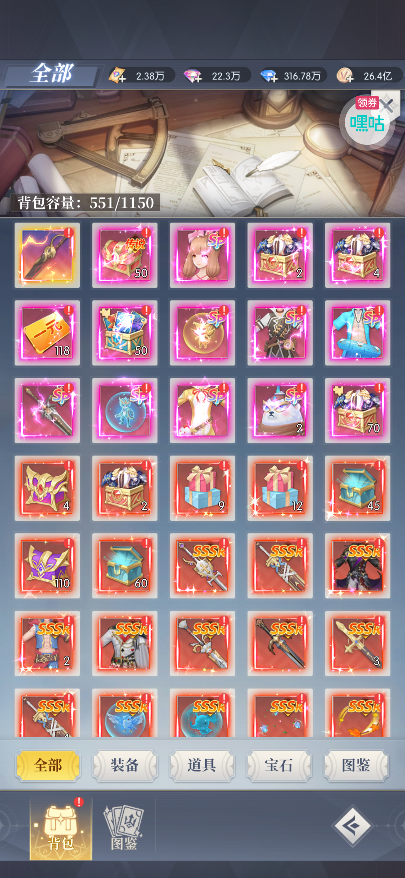 夺宝券*1、比武令*1、5星随机将魂*10(每个账号限领一次)