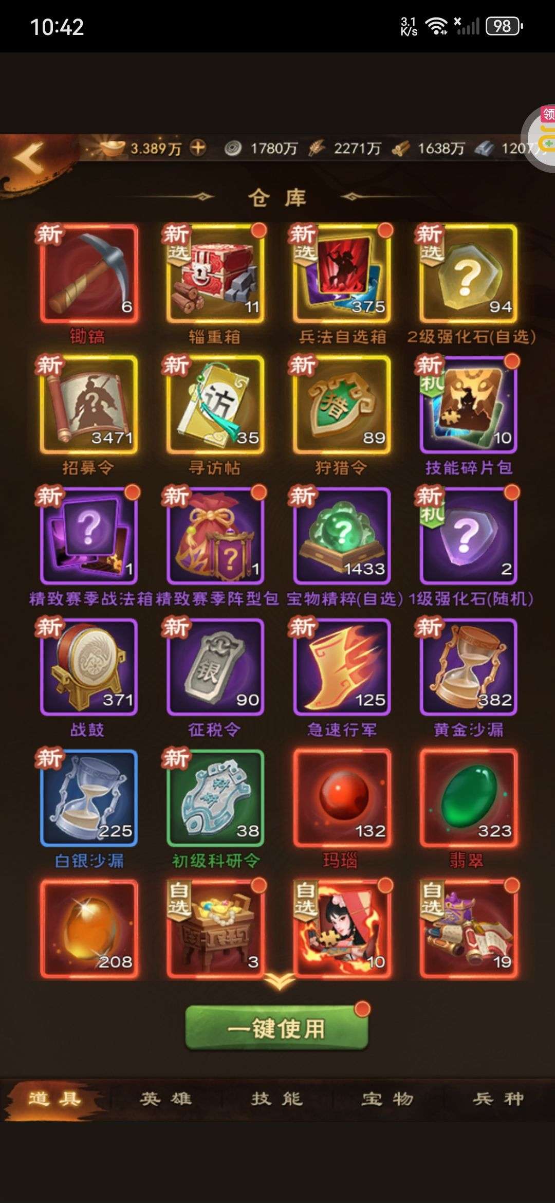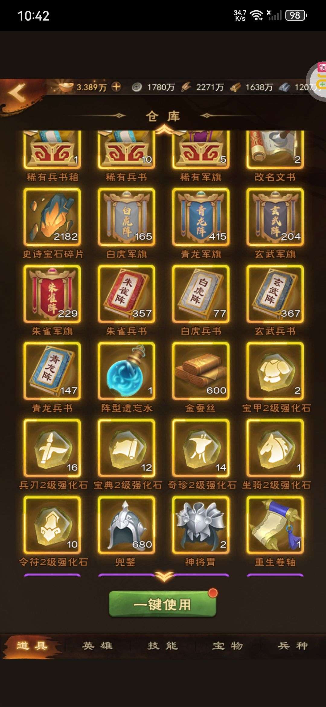 夺宝券*1、比武令*1、5星随机将魂*10(每个账号限领一次)