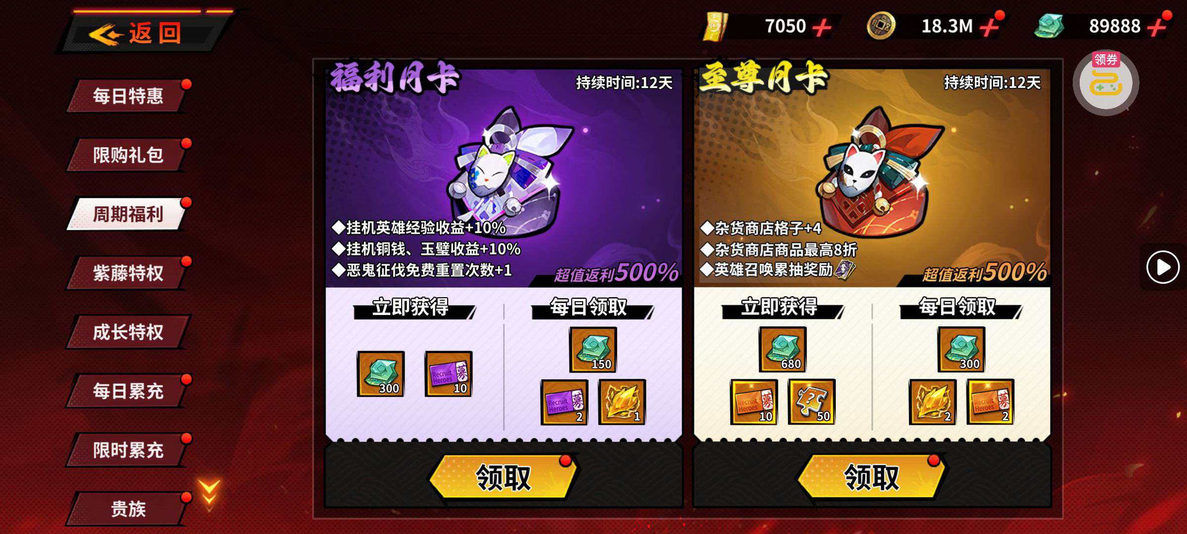 夺宝券*1、比武令*1、5星随机将魂*10(每个账号限领一次)