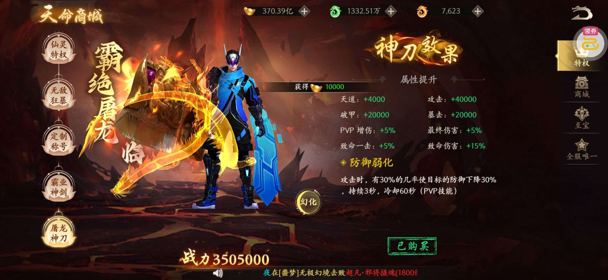 夺宝券*1、比武令*1、5星随机将魂*10(每个账号限领一次)