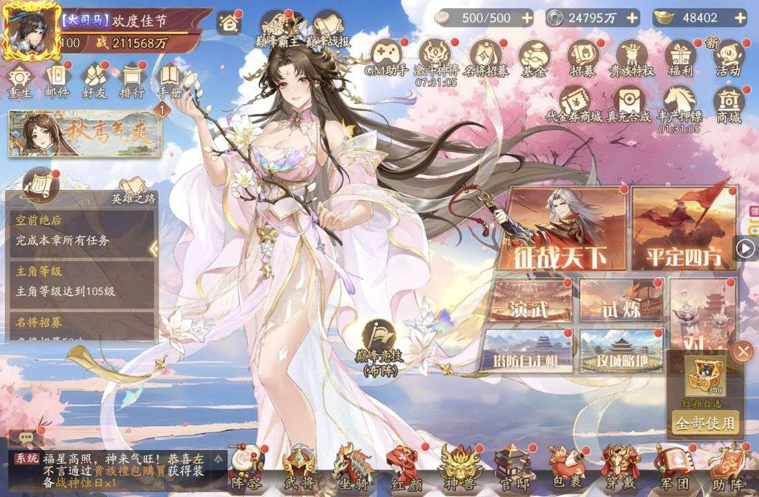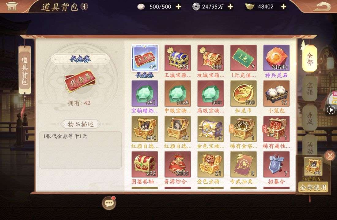 夺宝券*1、比武令*1、5星随机将魂*10(每个账号限领一次)