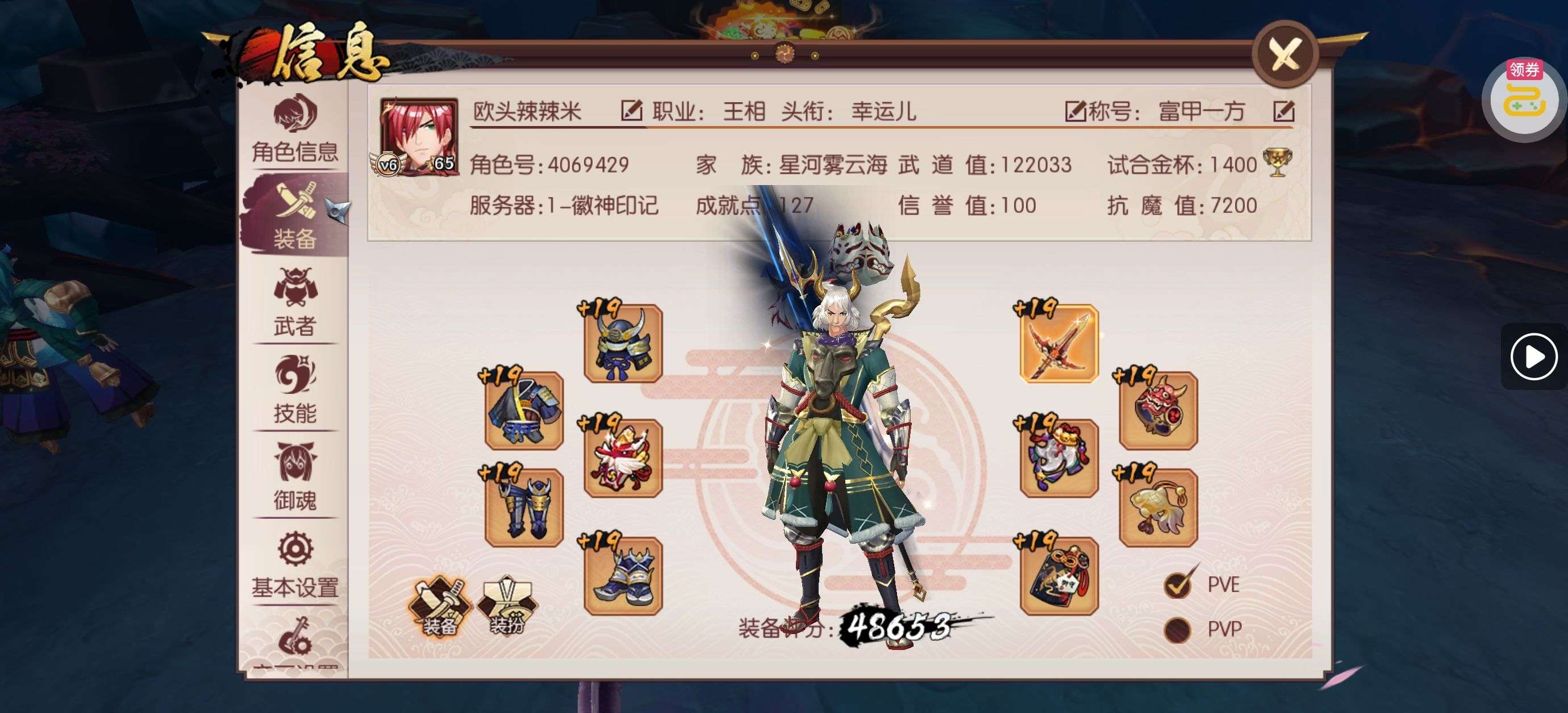 夺宝券*1、比武令*1、5星随机将魂*10(每个账号限领一次)