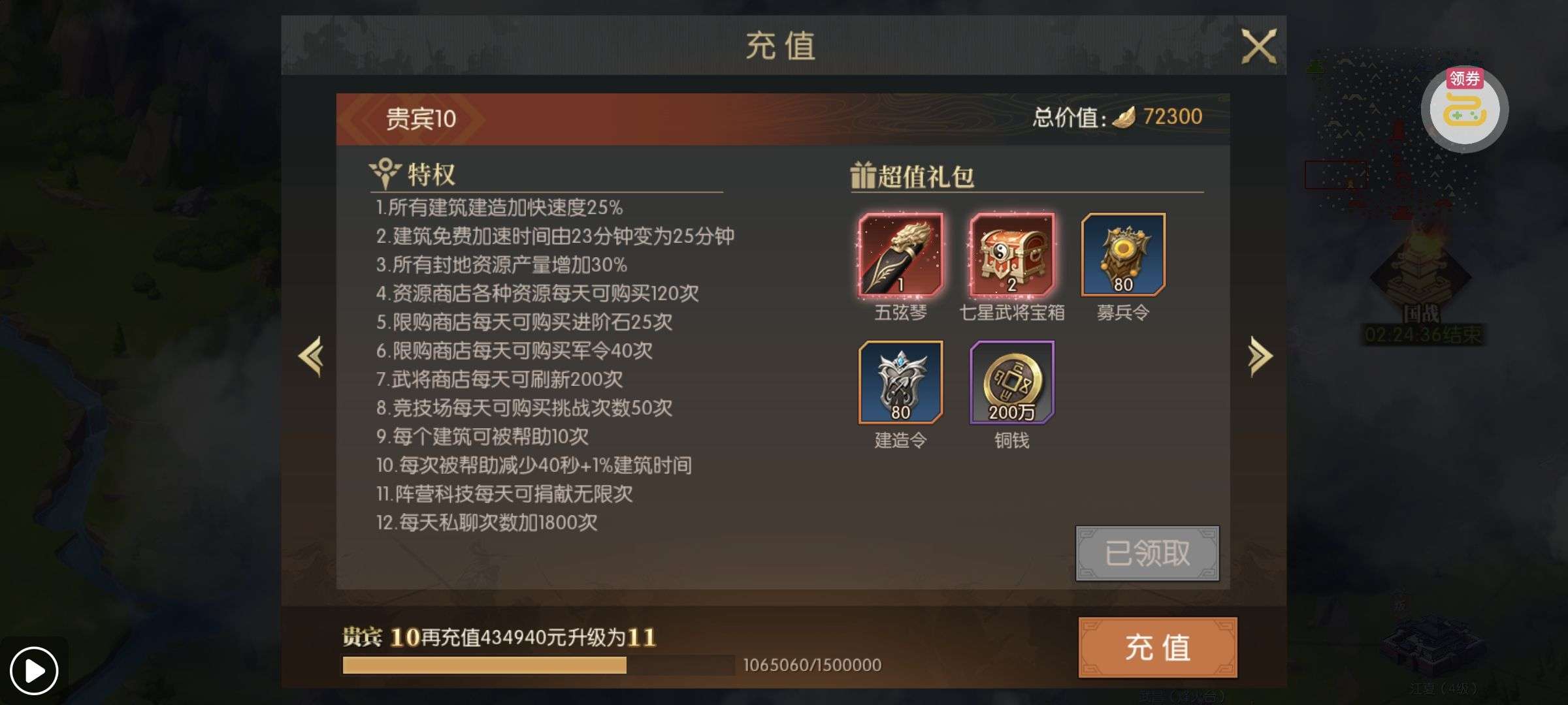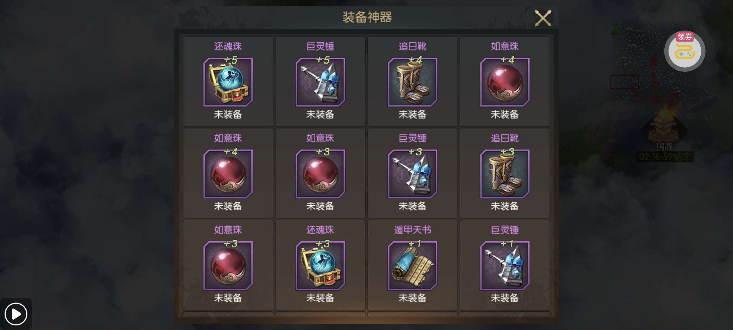 夺宝券*1、比武令*1、5星随机将魂*10(每个账号限领一次)