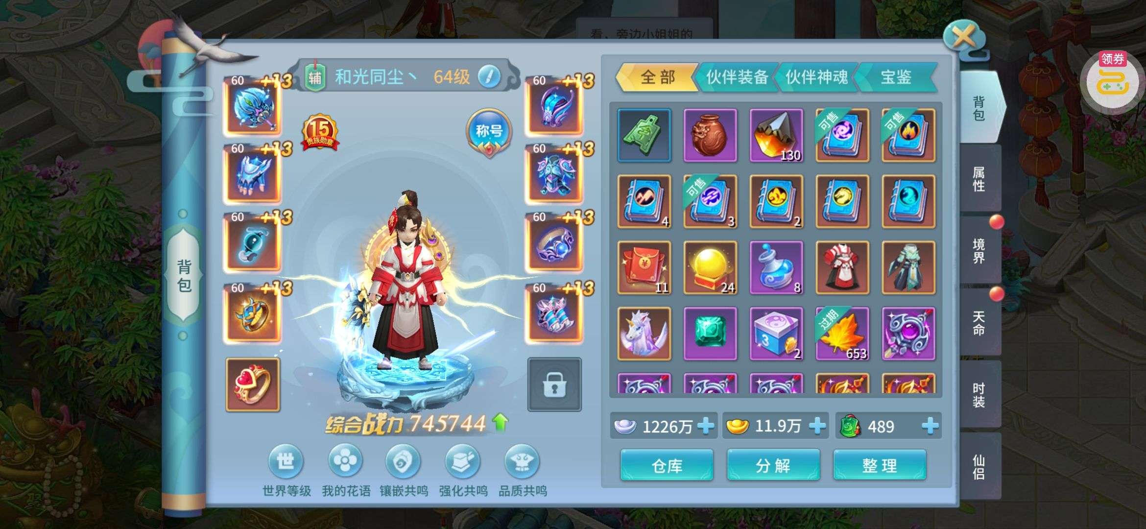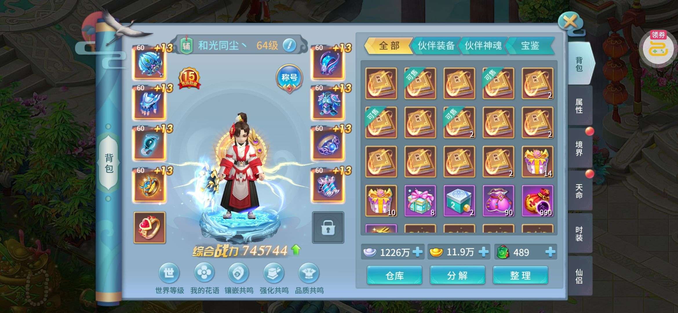 夺宝券*1、比武令*1、5星随机将魂*10(每个账号限领一次)