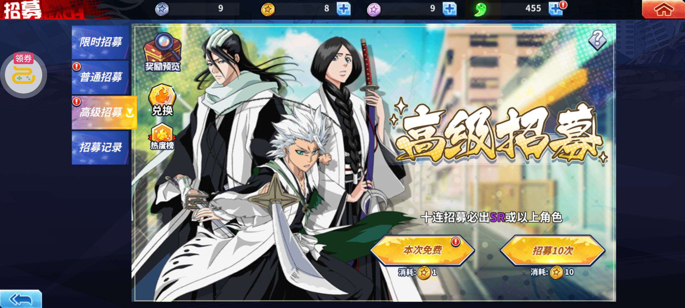 夺宝券*1、比武令*1、5星随机将魂*10(每个账号限领一次)