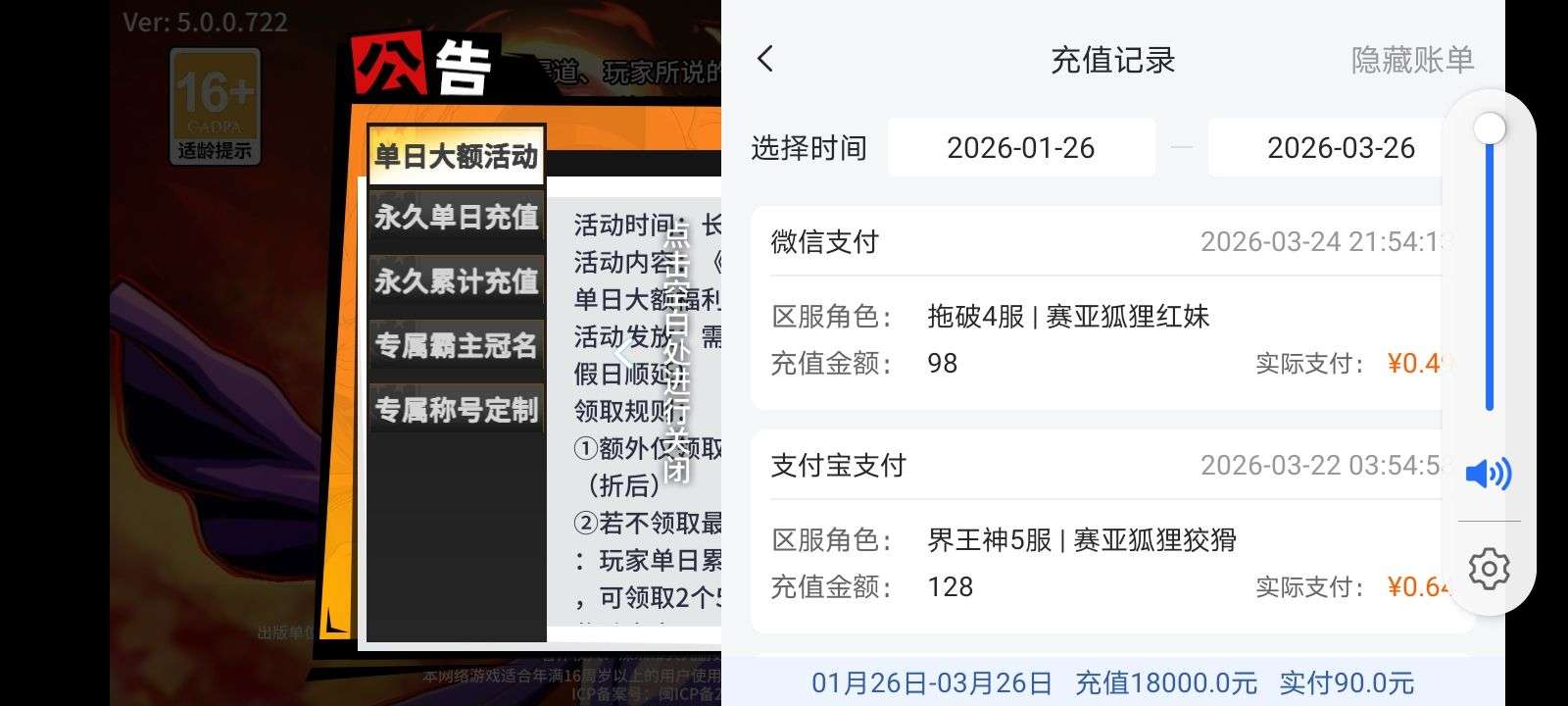 累计充值: