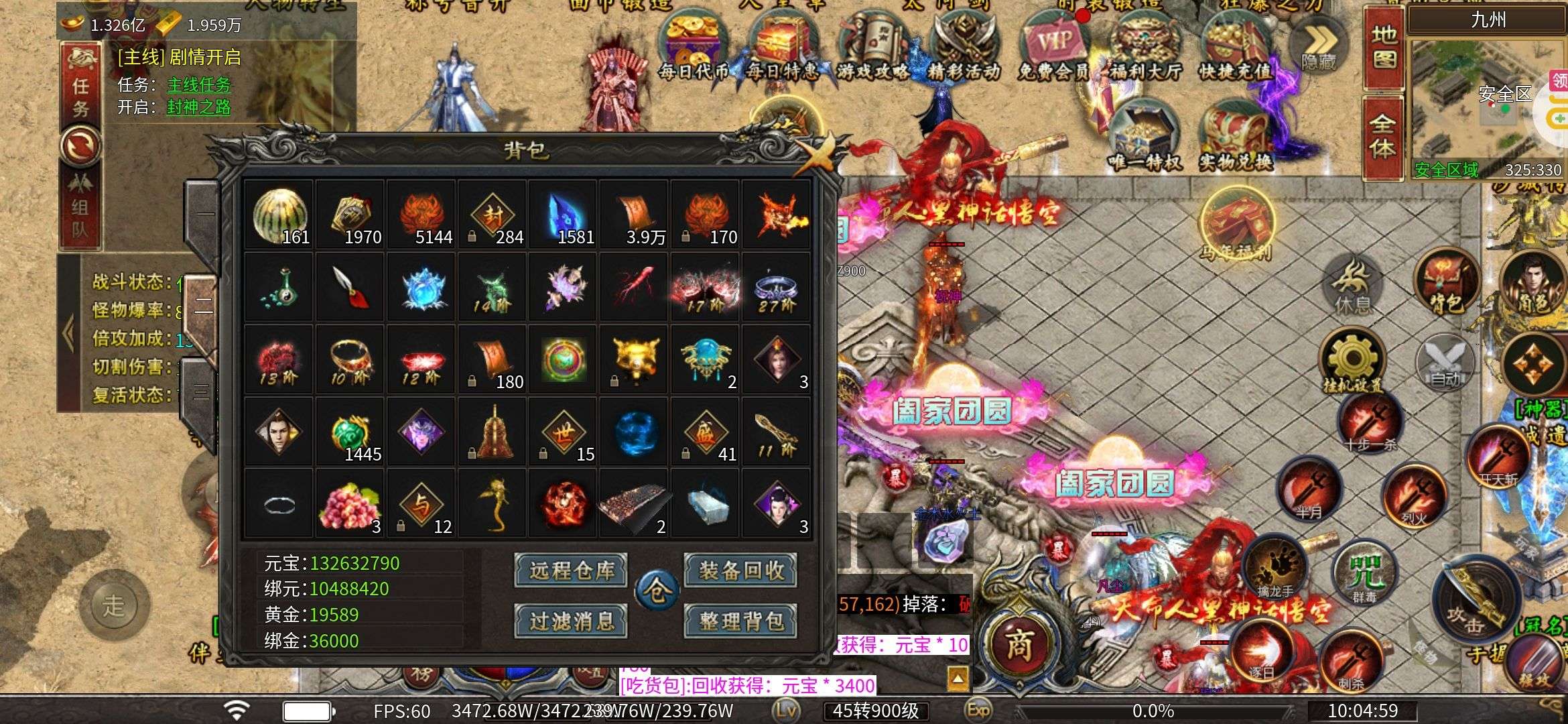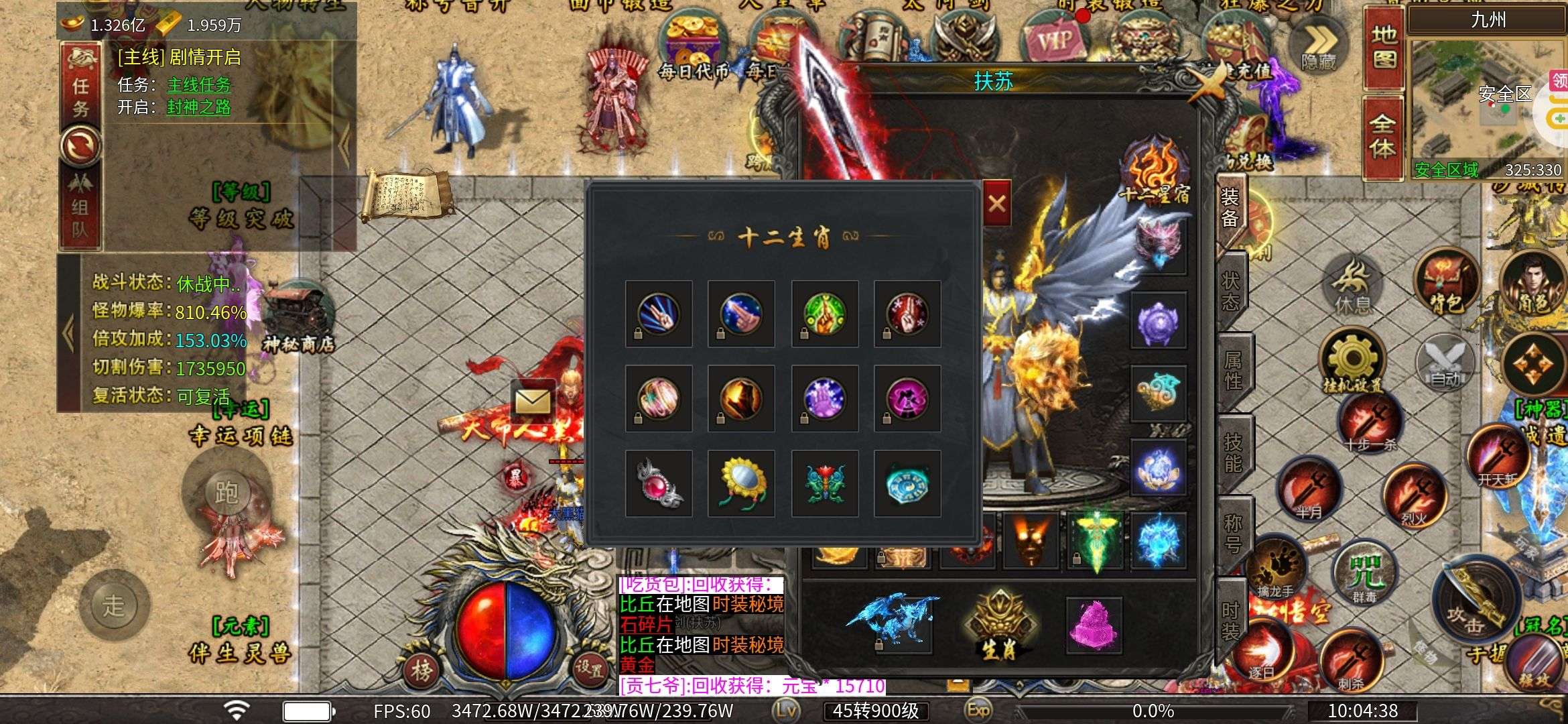 角色等级200多级转生13阶排名20多名有充钱。