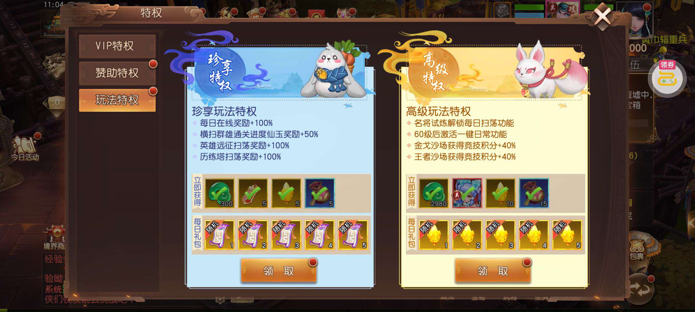夺宝券*1、比武令*1、5星随机将魂*10(每个账号限领一次)