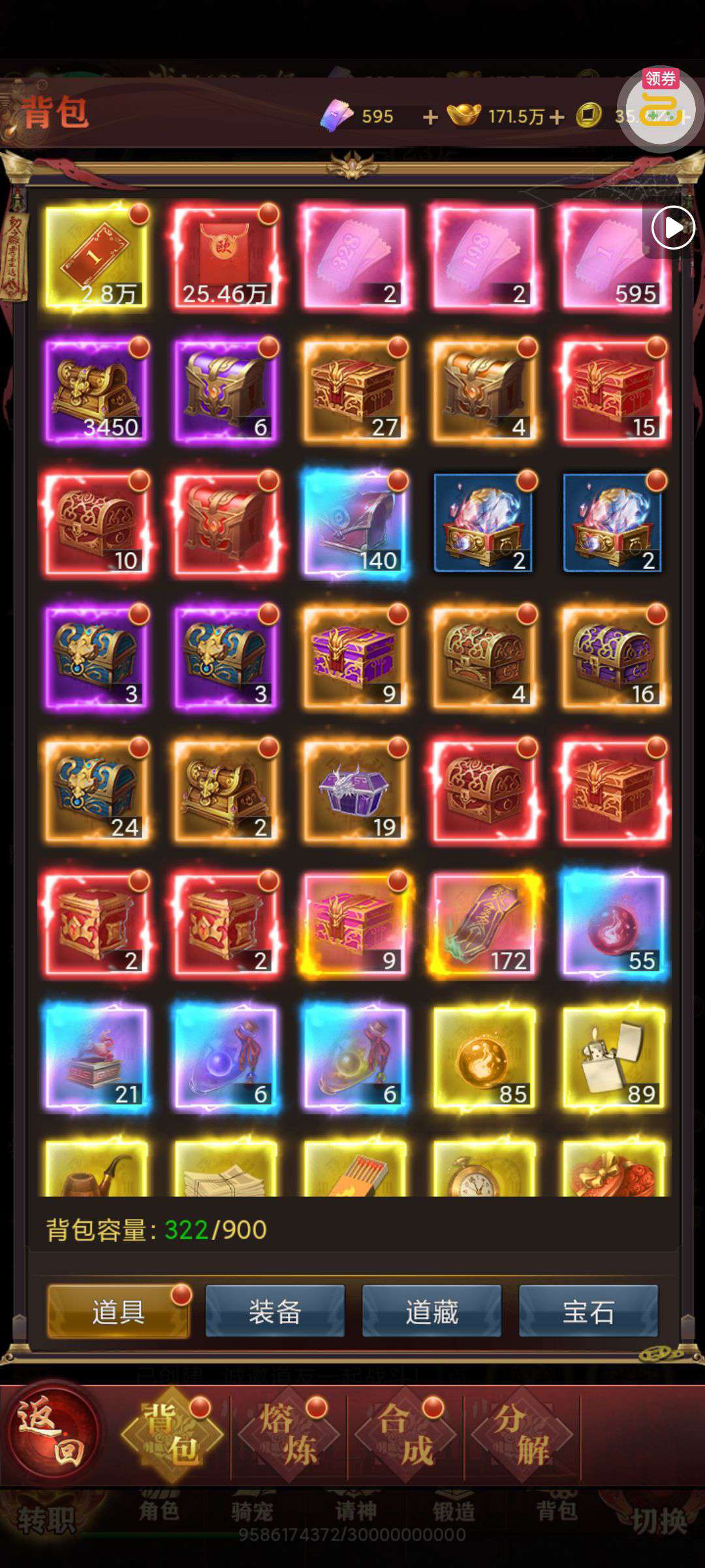 夺宝券*1、比武令*1、5星随机将魂*10(每个账号限领一次)