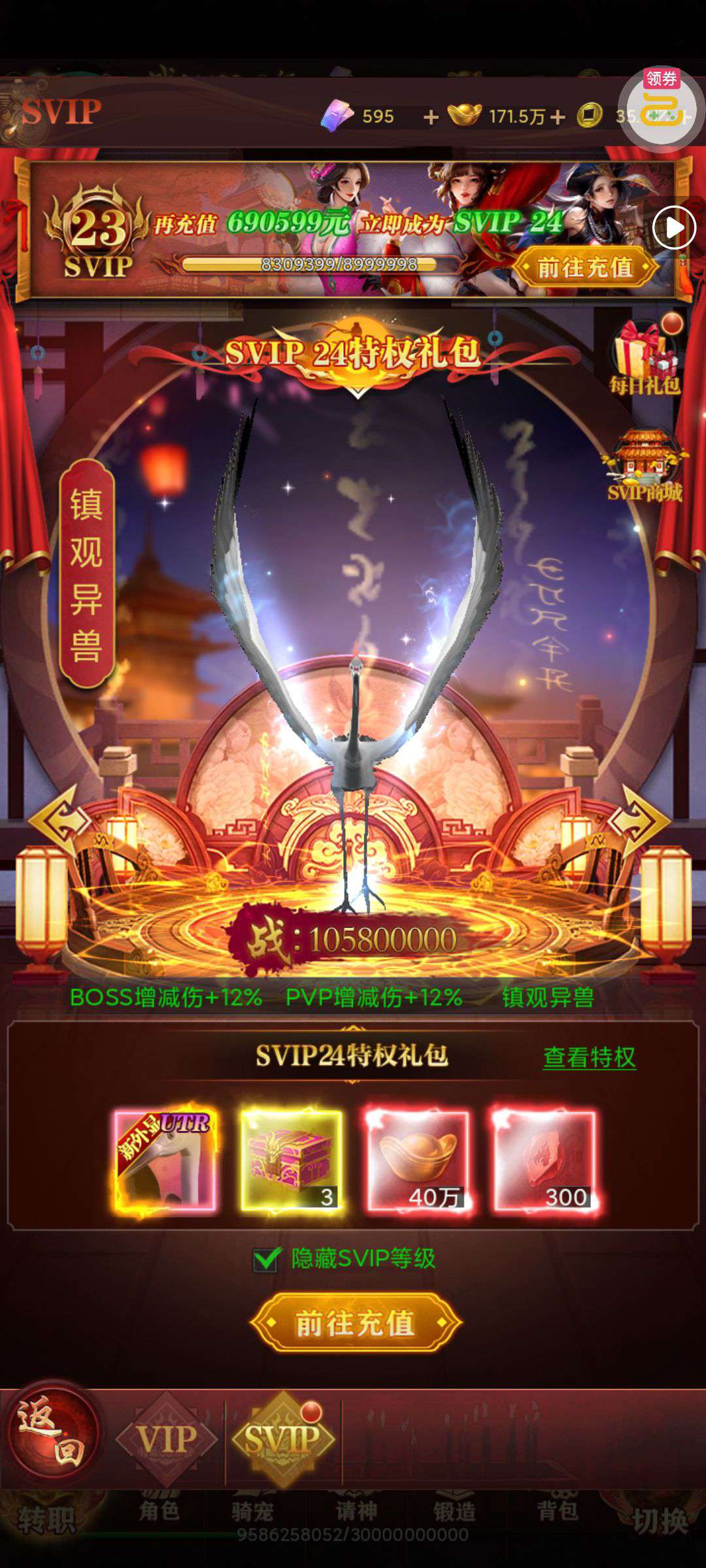 30张648真充卡豪礼、侠客灵丹*10、侠客神丹*10、侠客金丹*1、专属挑战令*1(每个账号限领一次)
