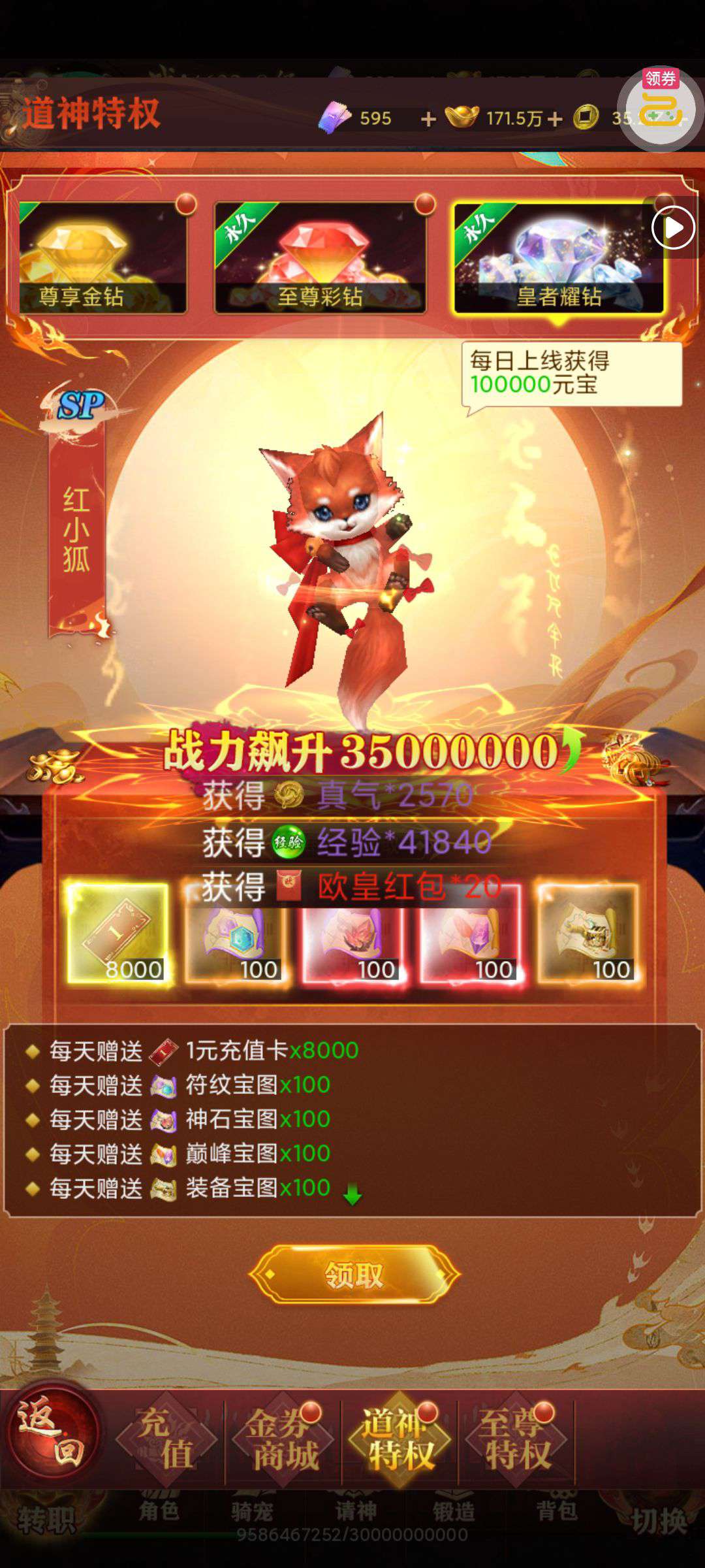强化药剂*200、钻石招募币*20、金币*50W(每个账号限领一次)