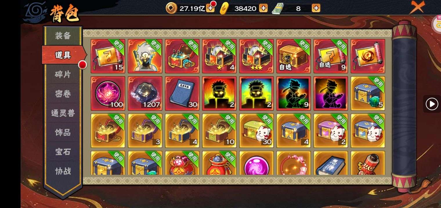 五阵营输出自选包*1、豪华材料自选礼包*2、高级忍法帖*20(每个账号限领一次)