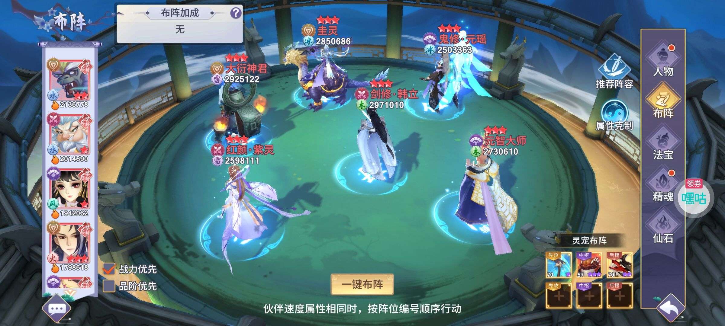 夺宝券*1、比武令*1、5星随机将魂*10(每个账号限领一次)