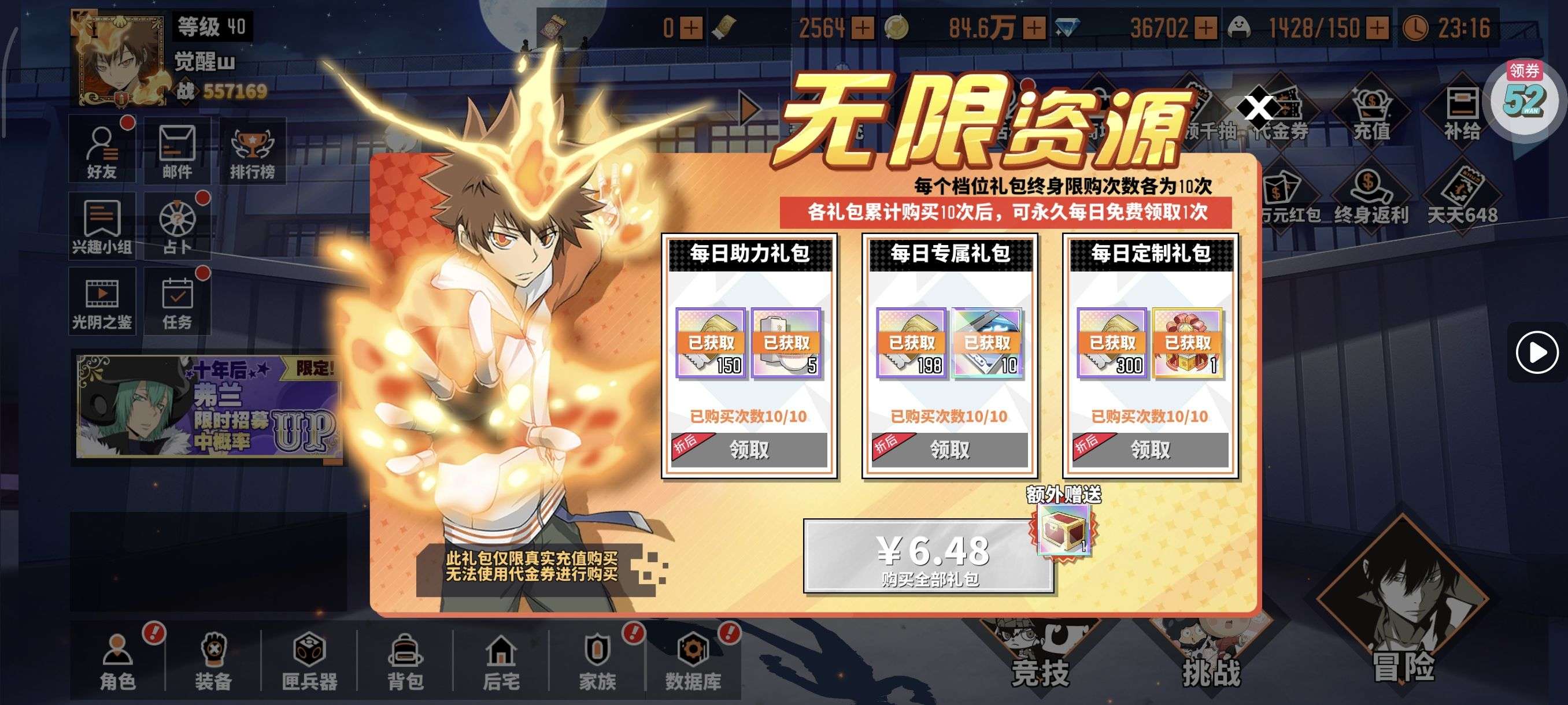 强化药剂*200、钻石招募币*20、金币*50W(每个账号限领一次)