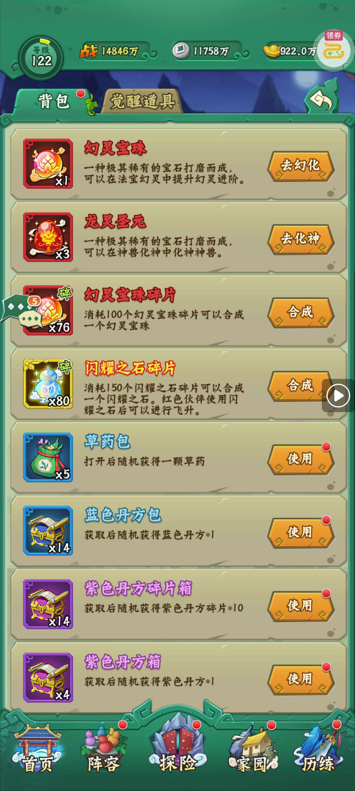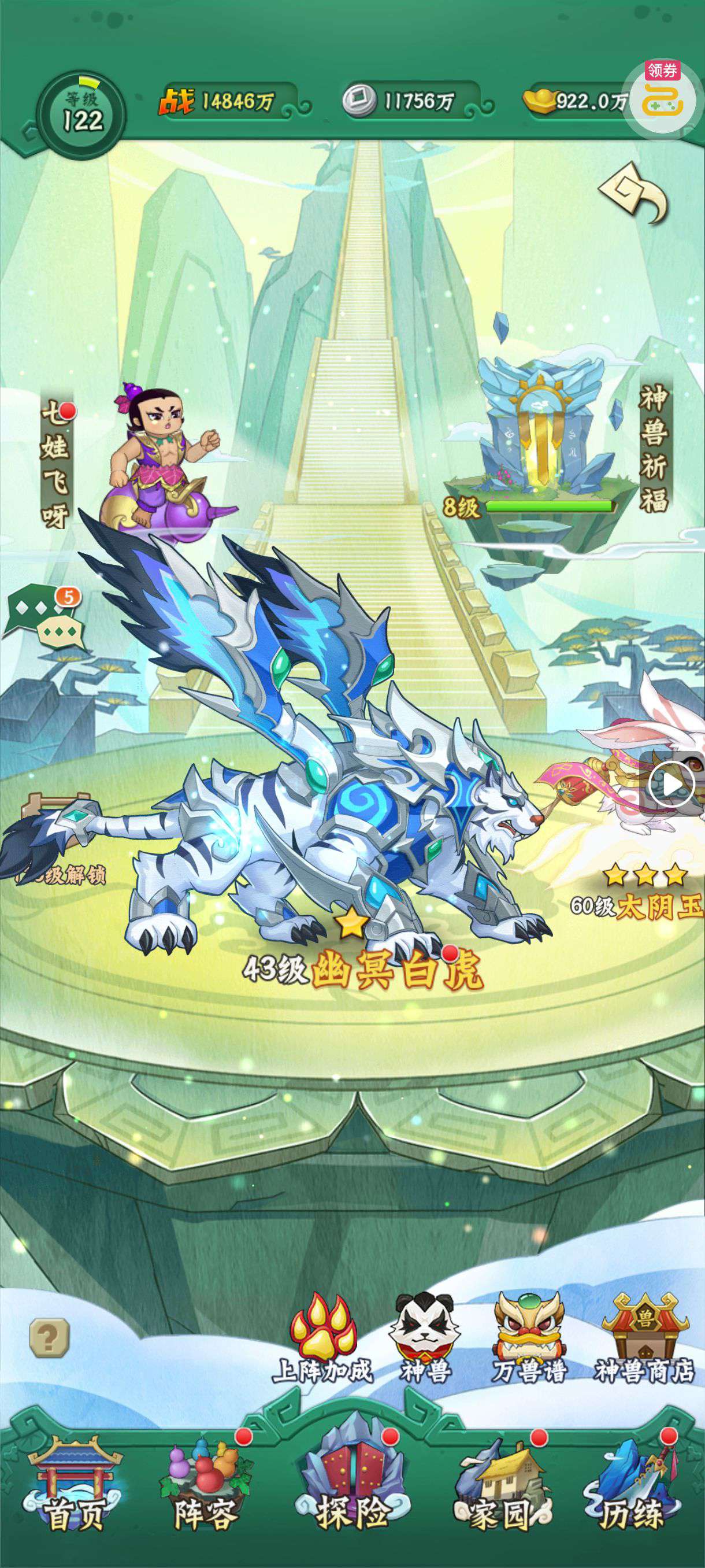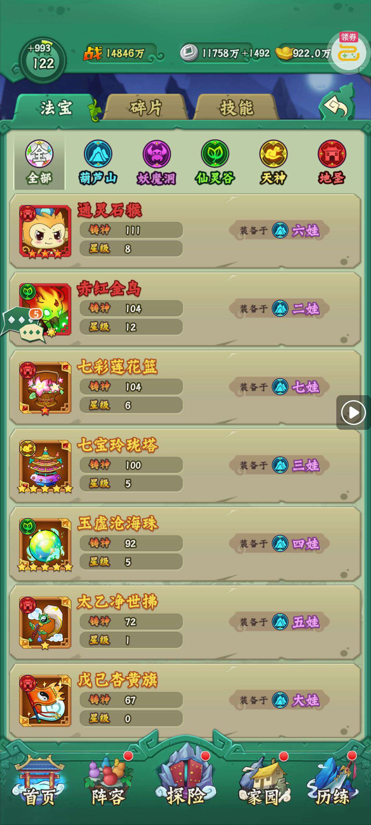 夺宝券*1、比武令*1、5星随机将魂*10(每个账号限领一次)