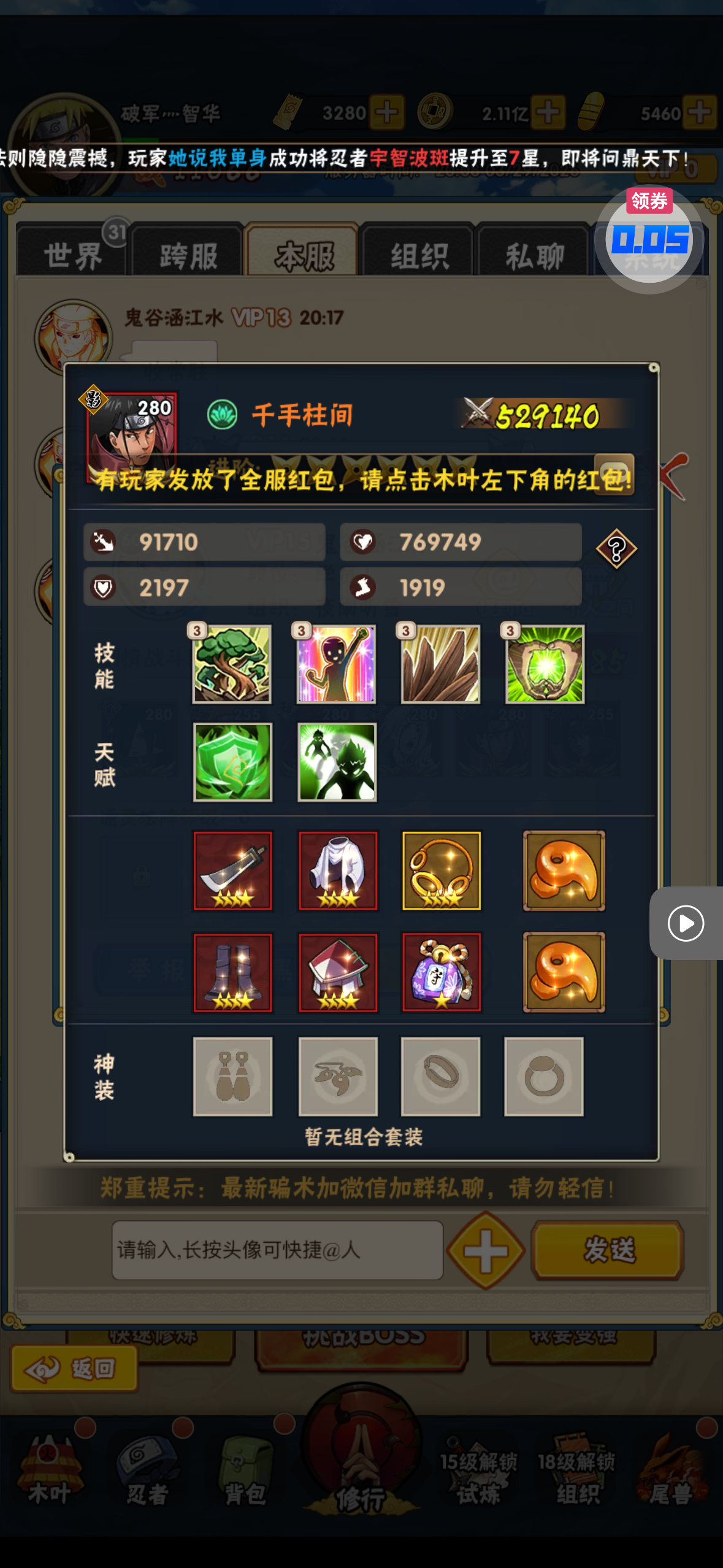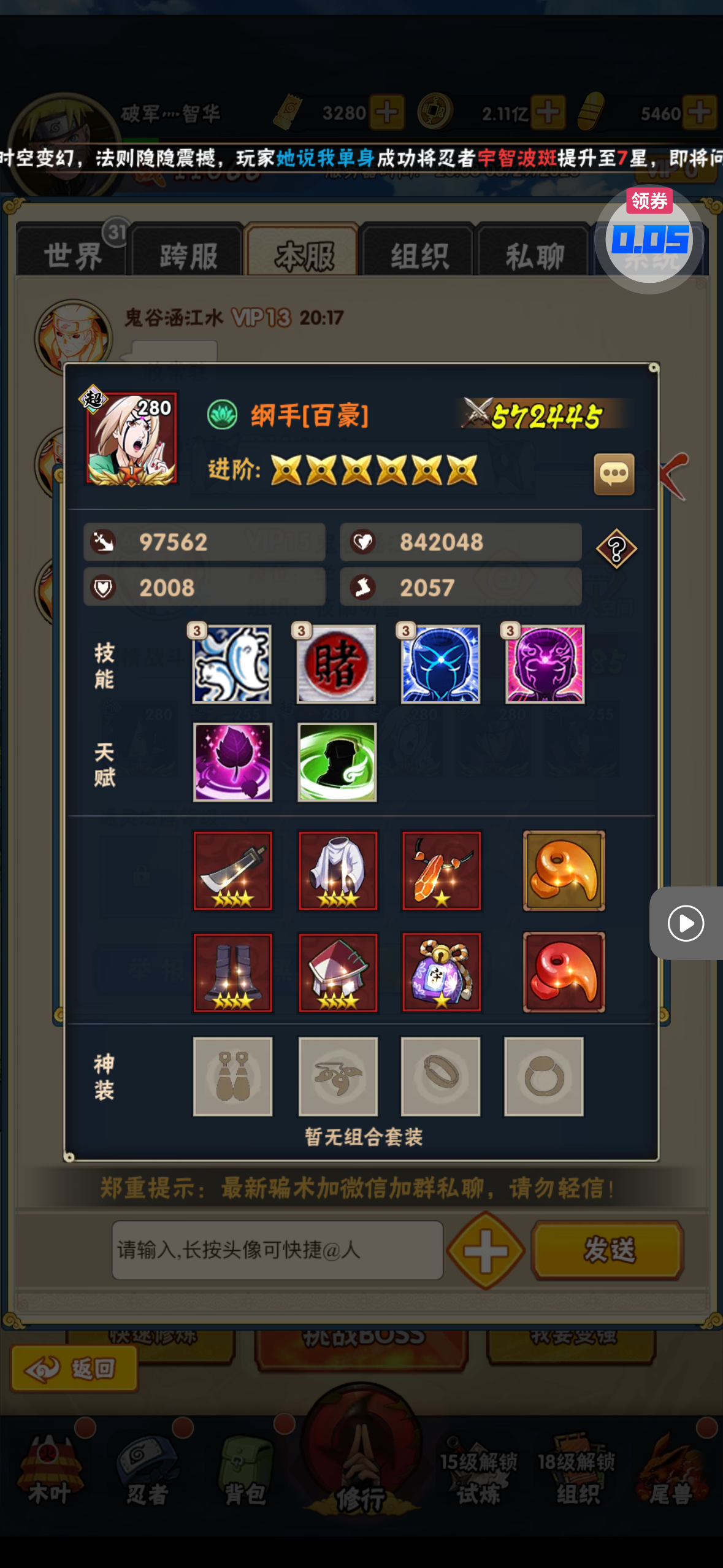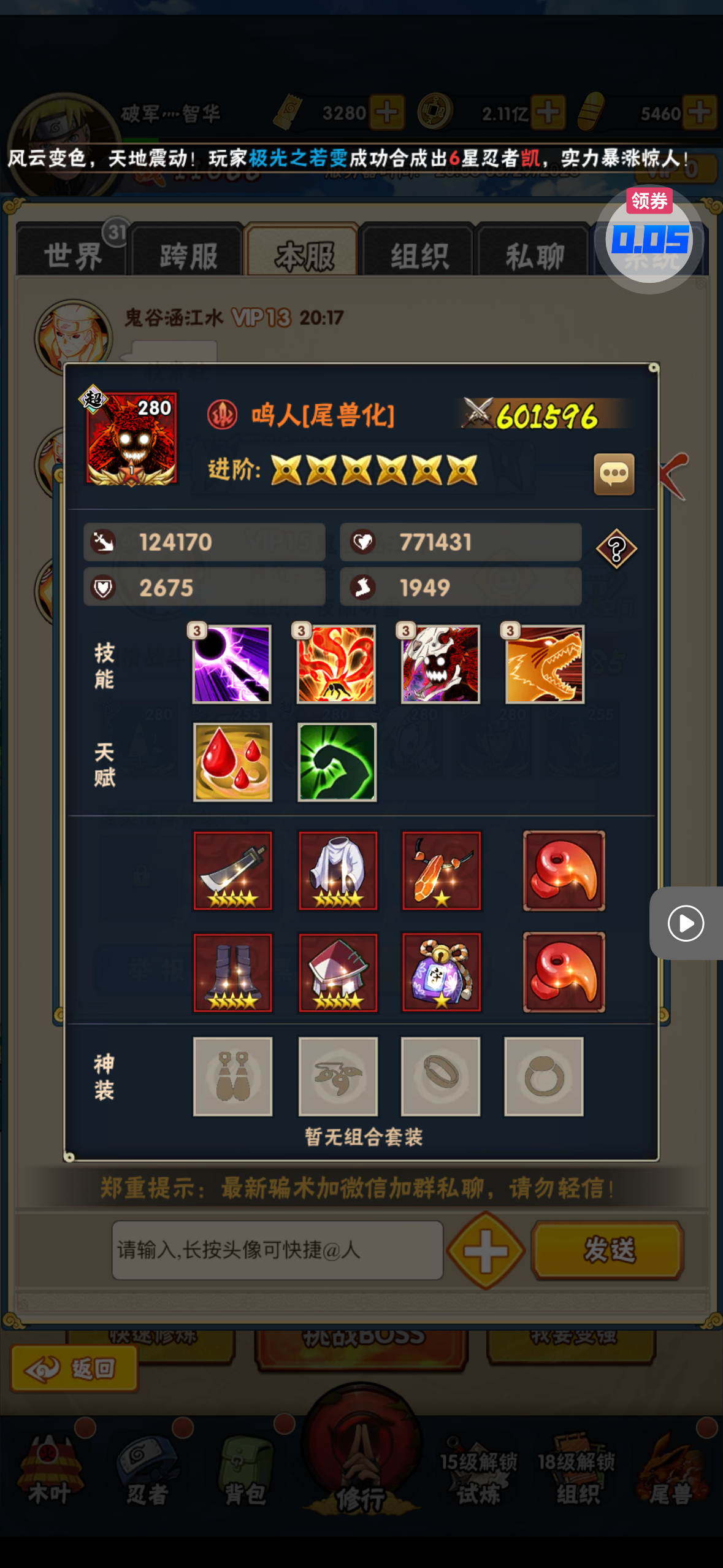 五阵营输出自选包*1、豪华材料自选礼包*2、高级忍法帖*20(每个账号限领一次)