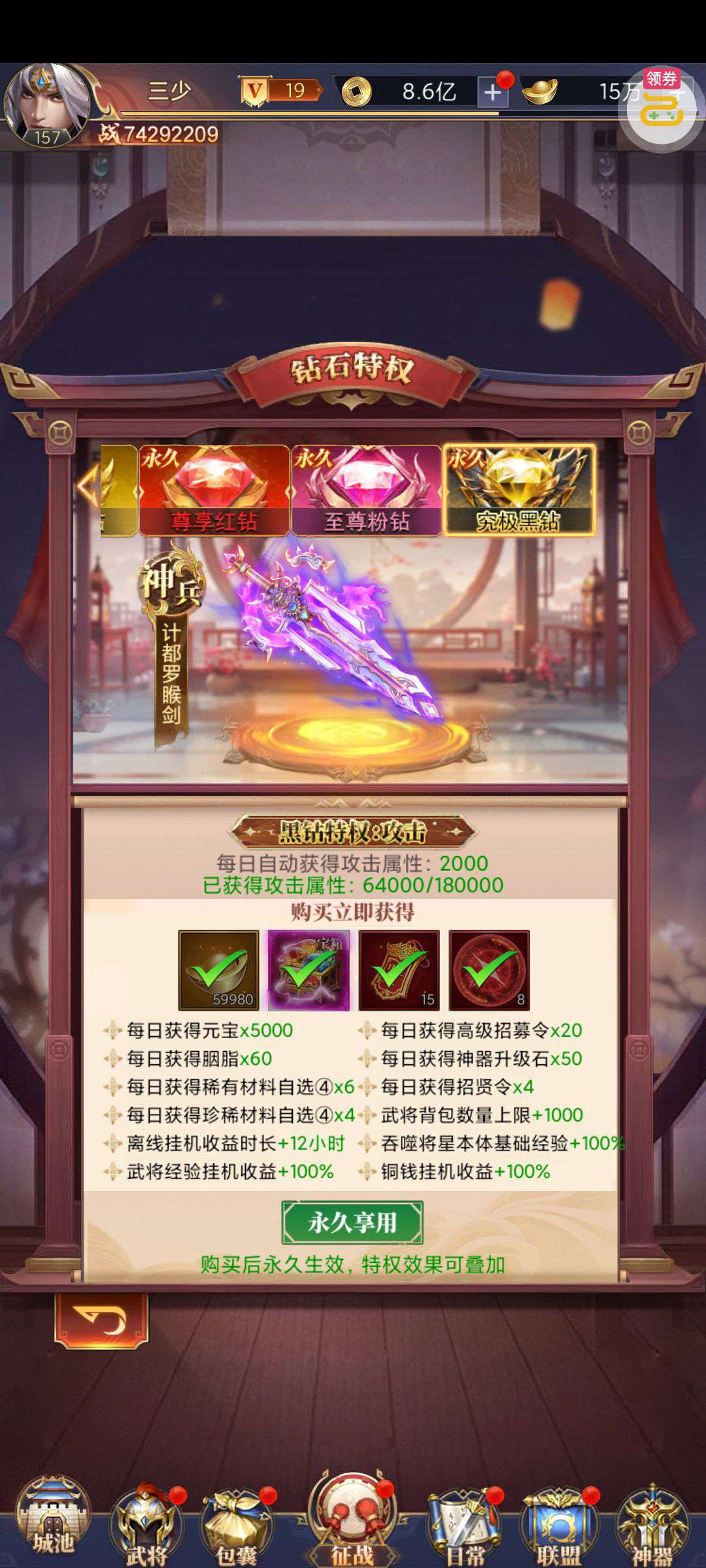 强化药剂*200、钻石招募币*20、金币*50W(每个账号限领一次)