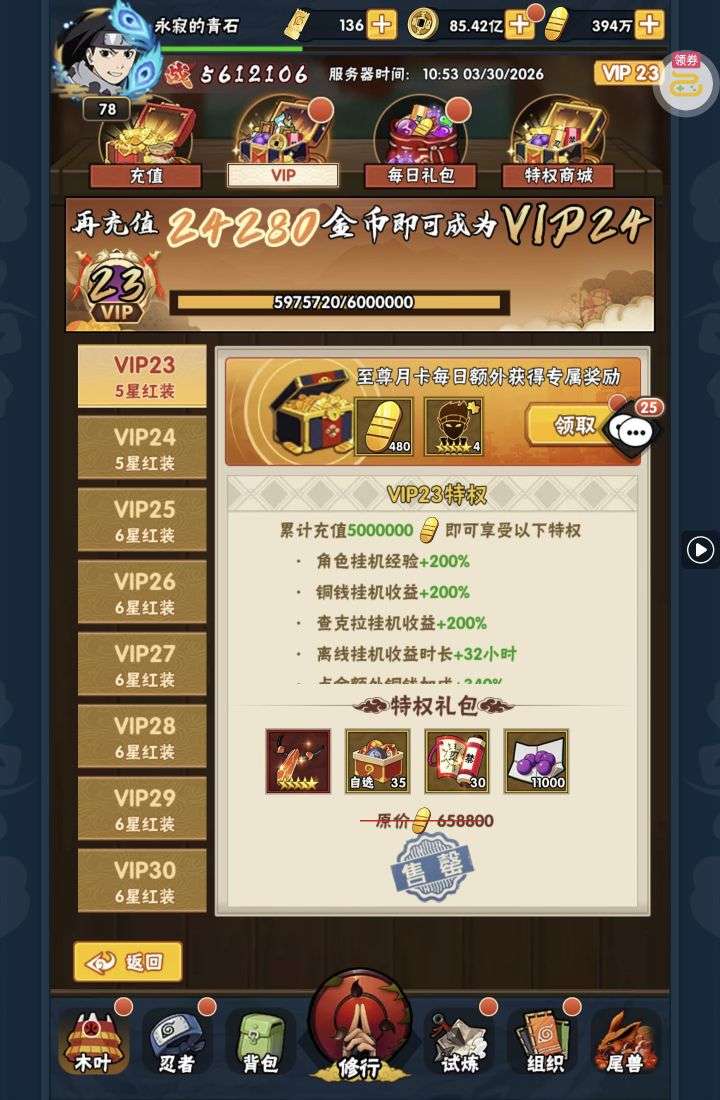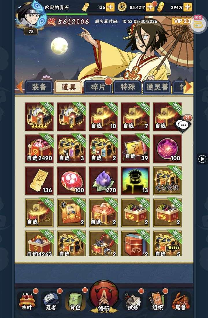 五阵营输出自选包*1、豪华材料自选礼包*2、高级忍法帖*20(每个账号限领一次)