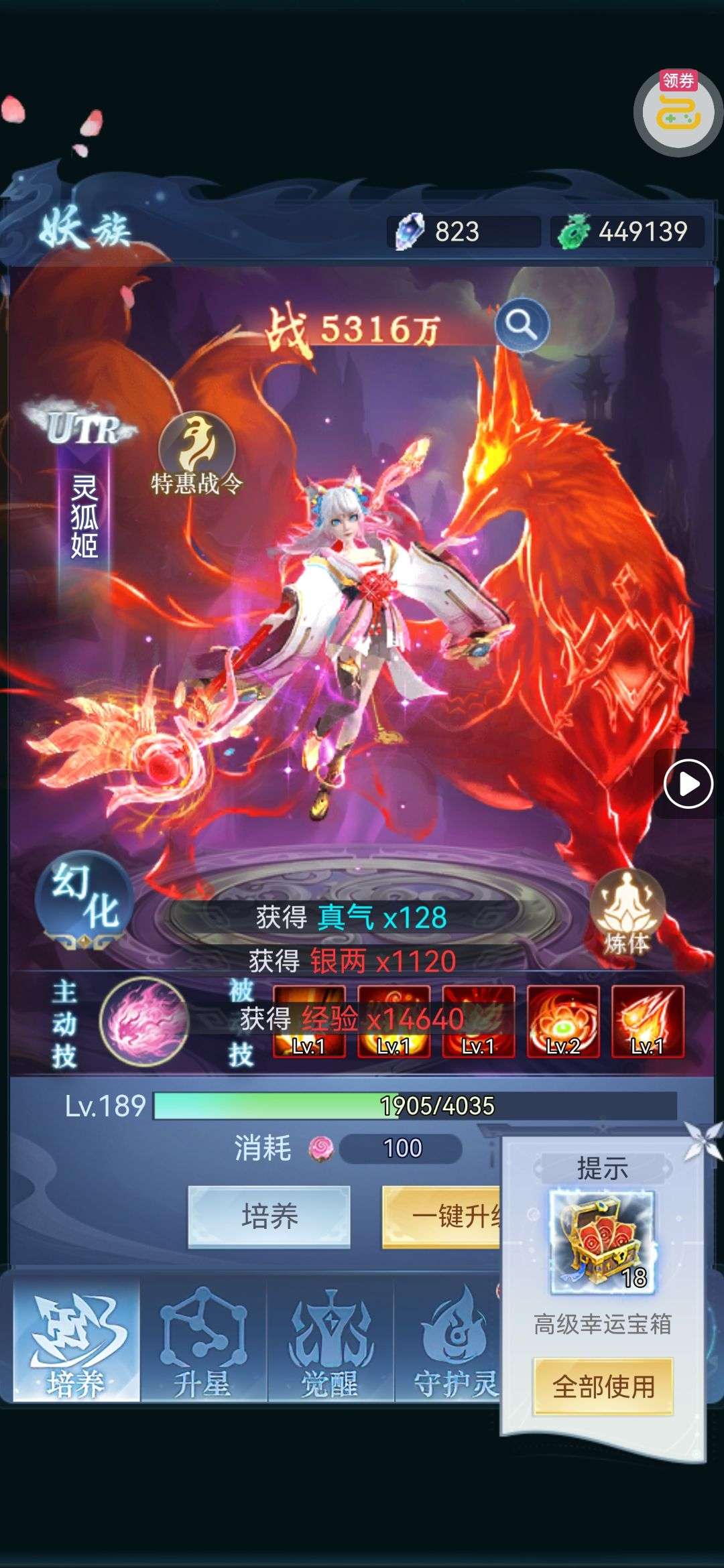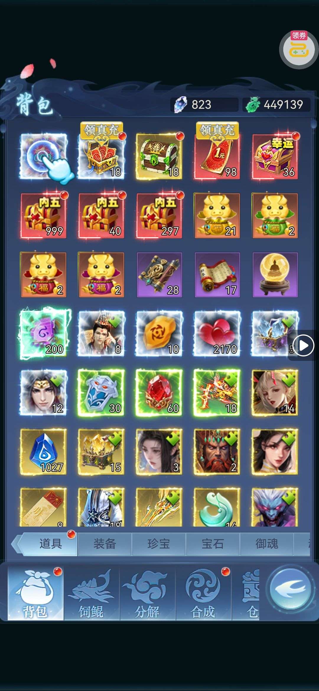 夺宝券*1、比武令*1、5星随机将魂*10(每个账号限领一次)