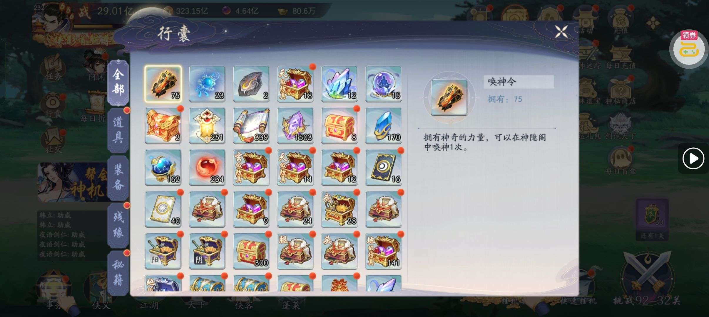 夺宝券*1、比武令*1、5星随机将魂*10(每个账号限领一次)