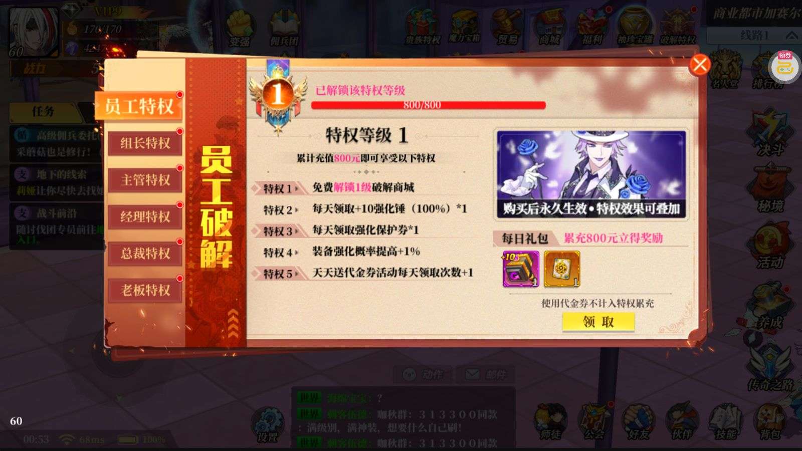 强化药剂*200、钻石招募币*20、金币*50W(每个账号限领一次)