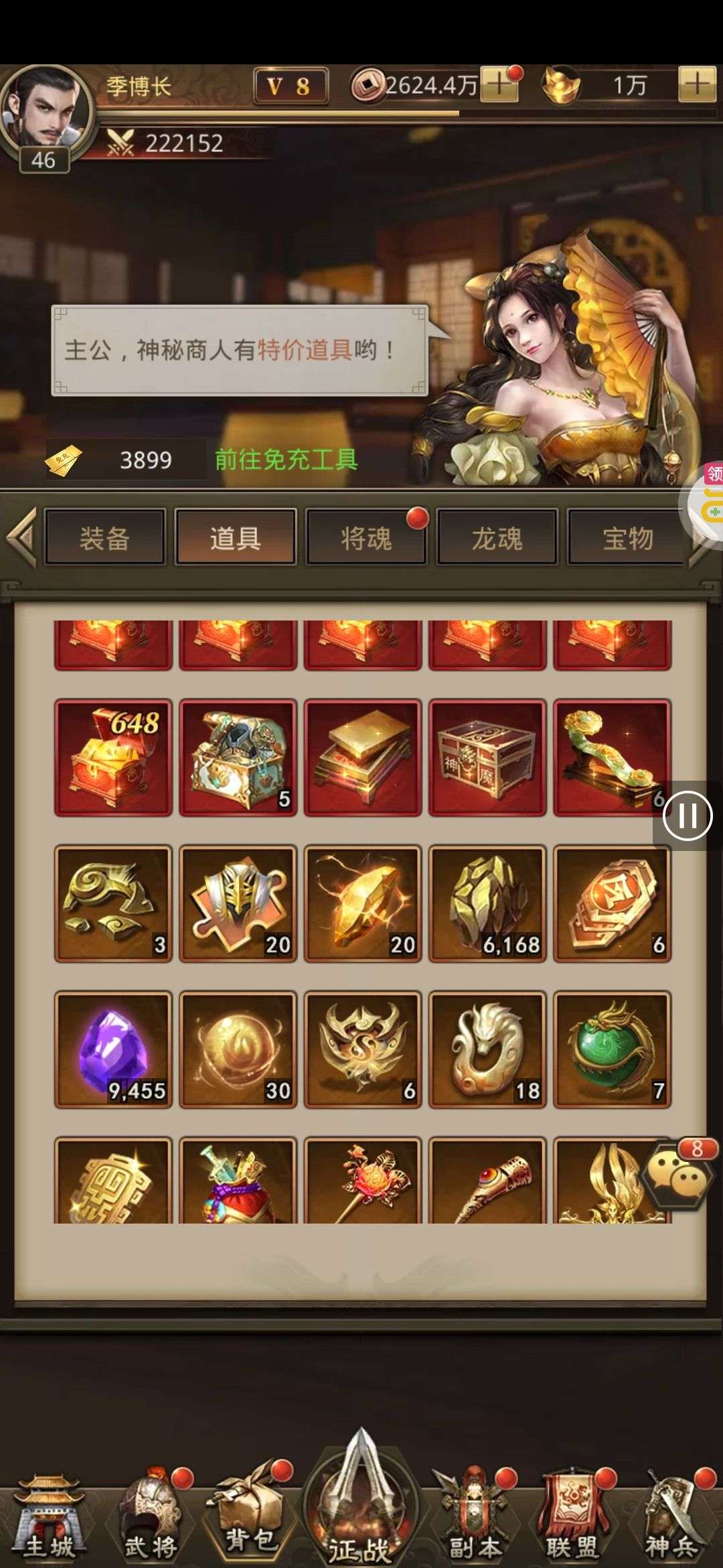 夺宝券*1、比武令*1、5星随机将魂*10(每个账号限领一次)